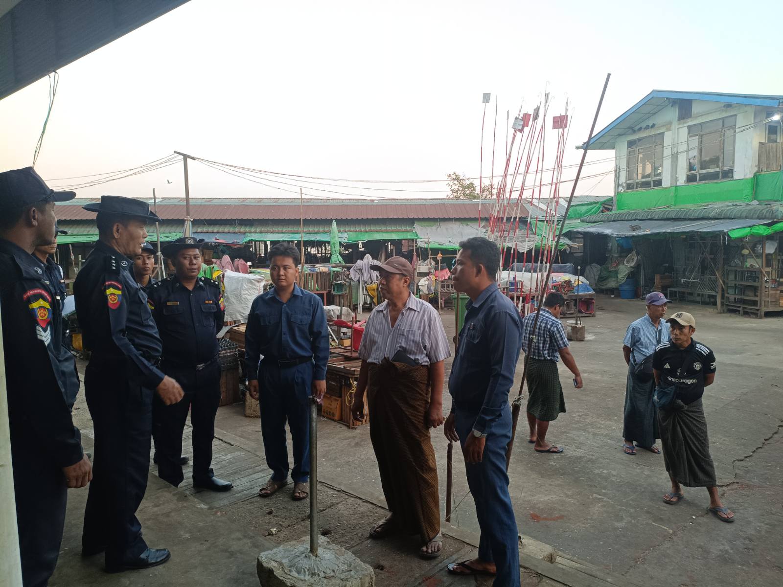ရန်ကုန်တိုင်းဒေသကြီး ၊ သန်လျင်ခရိုင်၊ ကျောက်တန်းမြို့နယ်၊ အလယ်ပိုင်းရပ်ကွက်ရှိ မြို့မဈေး မီးဘေးကြိုတင်ကာကွယ်ရေးလိုက်လံစစ်ဆေးခြင်းကို ယမန်နေ့ ညပိုင်းက ဆောင်ရွက်ခဲ့သည်၊၊