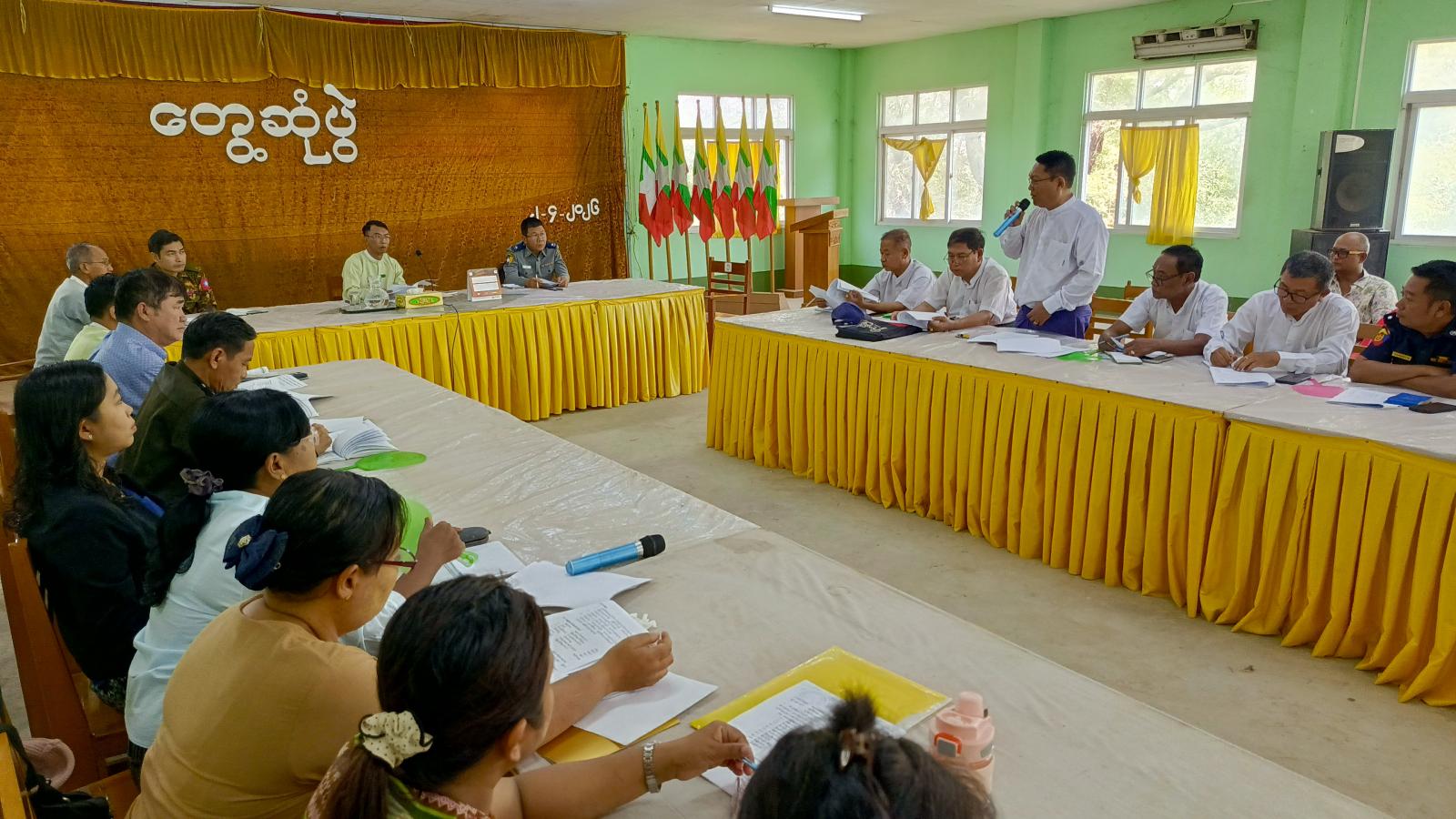 ဆက်လက်၍ ဒုတိယမြို့နယ်အုပ်ချုပ်ရေးမှူး ဦးညီညီလတ်တို့က ဗဟိုမဏ္ဍပ်တည်ဆောက်မည့်နေရာနှင့် လမ်းလျှောက်သင်္ကြန်ကျင်းပမည့်နေရာ၊ တည်ဆောက်ရေးအတွက် လိုအပ်ချက်များ၊ လုံခြုံရေးဆိုင်ရာကိစ္စရပ်များကို ရှင်းလင်းဆွေးနွေးပြီး တက်ရောက်လာသူများက မဟာသင်္ကြန် စည်ကားသိုက်မြိုက်စွာကျင်းပနိုင်ရေးအတွက် လိုအပ်ချက်များနှင့်ပတ်သက်၍ ဆောင်ရွက်ပေးမည့်အခြေအနေများကိုတင်ပြဆွေးနွေးခဲ့ကြောင်း သိရသည်။