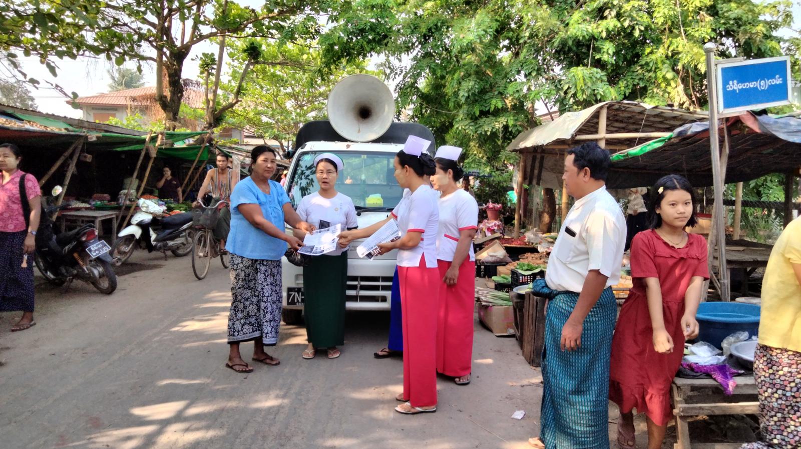 ပဲခူးတိုင်းဒေသကြီး၊ တောင်ငူခရိုင်၊ ထန်းတပင်မြို့နယ်၊ ပြည်သူ့ကျန်းမာရေးနှင့်ကုသရေးဦးစီးဌာနမှ ဝန်ထမ်းများက အပူဒဏ်အန္တရာယ် ကြိုတင်ကာကွယ်ရေး အသိပညာပေး လိုက်လံနှိုးဆော်ခြင်းနှင့် လက်ကမ်းစာစောင်များ ဖြန့်ဝေခြင်းတို့ကို ယနေ့နံနက် ၈ နာရီအချိန်က မြို့မစည်ပင်သာယာဈေးနှင့် လူစည်ကားရာနေရာများတွင် ပြုလုပ်ခဲ့သည်။