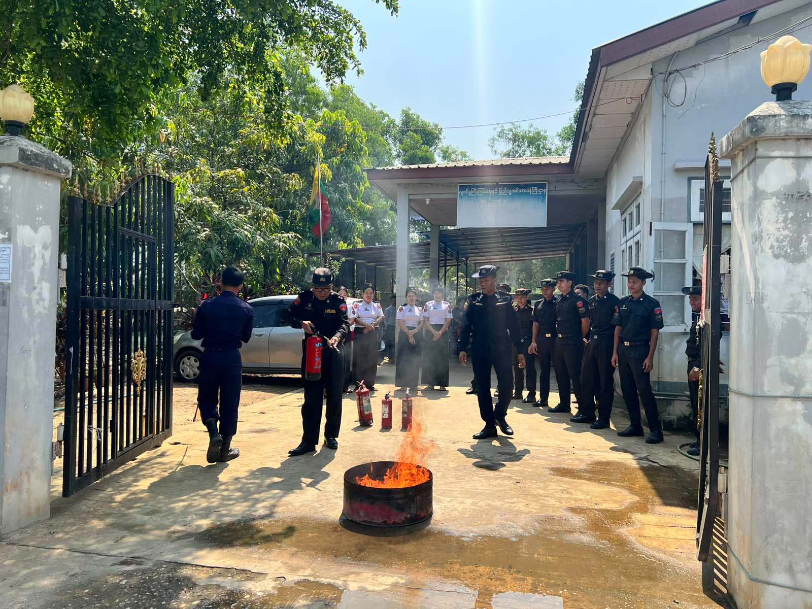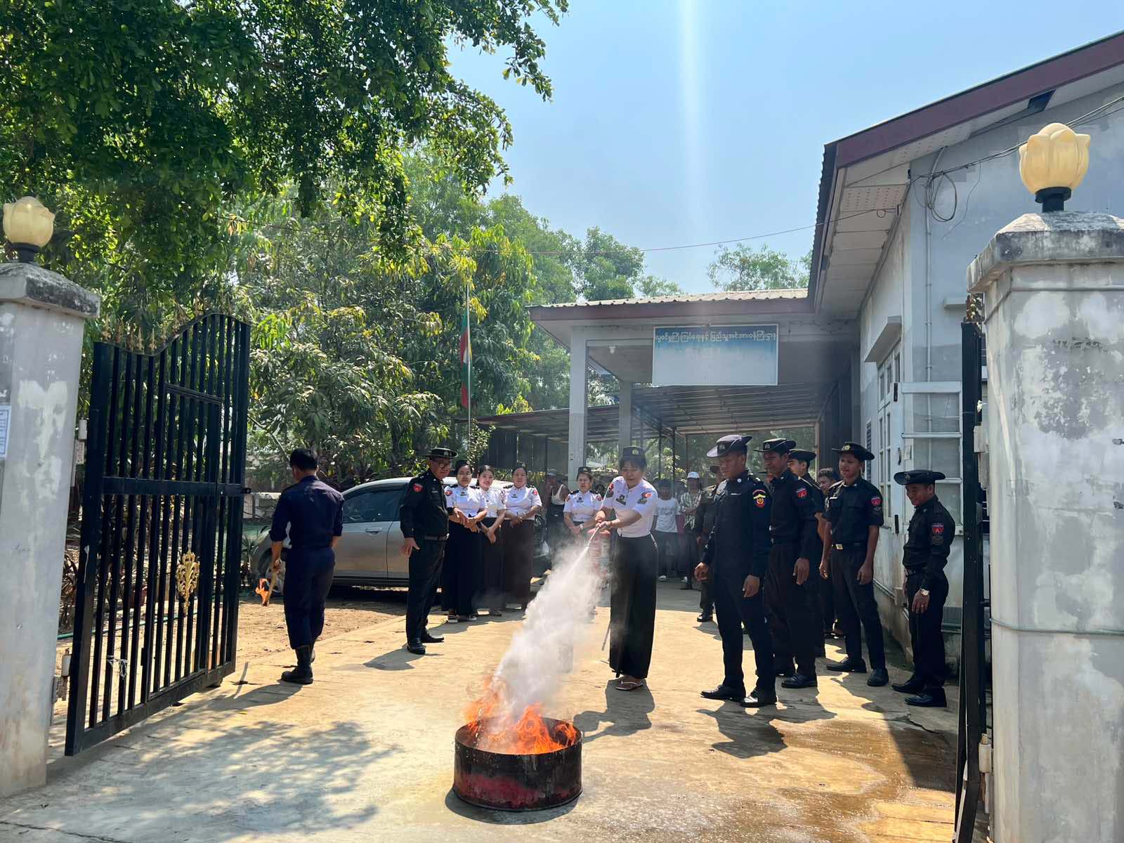 ထို့နောက် မီးသတ်တပ်ဖွဲ့ဝင်များက မြို့နယ်ဦးစီးမှူးရုံးဝန်ထမ်းများအား မီးသတ်ဆေးဘူးအသုံးပြု၍ လက်တွေ့မီးငြှိမ်းသတ်နည်းများကို ပြသပေးခဲ့ကြပြီး ဝန်ထမ်းများက လက်တွေ့မီးငြှိမ်းသတ်ခြင်းများကို ဆောင်ရွက်ခဲ့ကြကြောင်း သိရသည်။