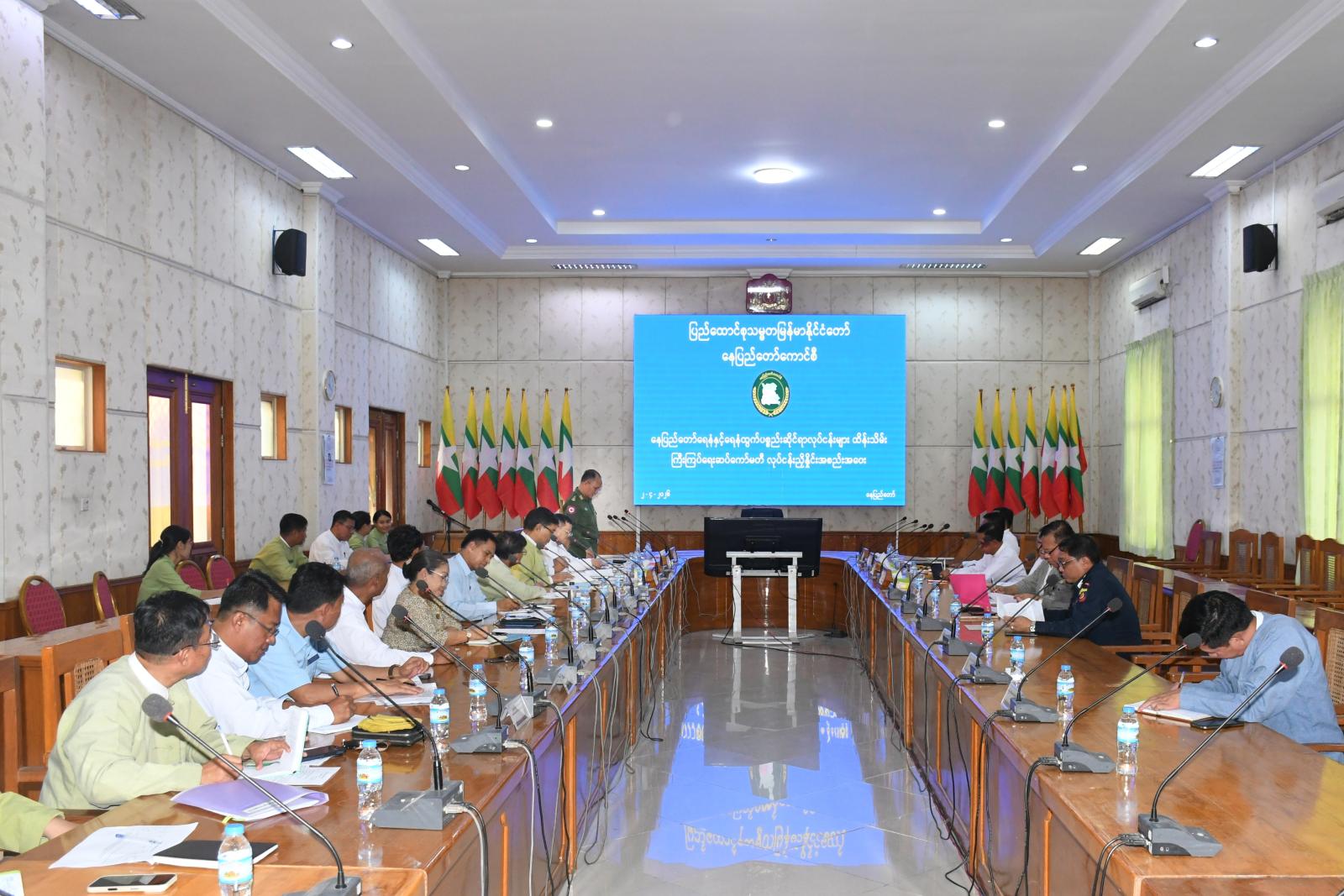 ပြည်ထောင်စုနယ်မြေ၊ နေပြည်တော်အတွင်း ရေနံနှင့်ရေနံထွက်ပစ္စည်းဆိုင်ရာလုပ်ငန်းများ ထိန်းသိမ်းကြီးကြပ်ရေးဆပ်ကော်မတီ လုပ်ငန်းညှိနှိုင်းအစည်းအဝေးကို ယမန်နေ့ နံနက်ပိုင်းက နေပြည်တော်ကောင်စီရုံး အစည်းအဝေးခန်းမ(၁)၌ကျင်းပရာ အခမ်းအနားသို့ နေပြည်တော်ကောင်စီဝင်များ၊ နေပြည်တော်အဆင့်ဌာနဆိုင်ရာများ၊ ခရိုင်၊ မြို့နယ် စီမံခန့်ခွဲရေးနှင့် အုပ်ချုပ်ရေးကော်မတီဥက္ကဋ္ဌများ တက်ရောက်သည်။