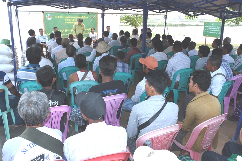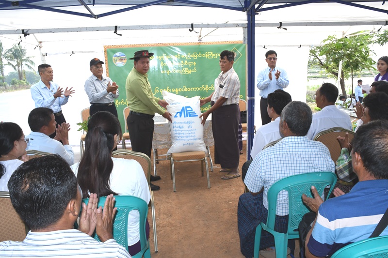 ဆက်လက်ပြီး ကျောက်ဆည်ခရိုင် စိုက်ပျိုးရေးဦးစီးဌာနမှ ခရိုင်ဦးစီးမှူး ဒေါ်ခင်ငြိမ်းထွေးက ကောက်စိုက်စက်ဖြင့် နွေစပါးစိုက်ပျိုးခြင်း၏ အားသာချက်များအား ရှင်းလင်းပြောကြားခဲ့ပြီး တောင်သူများအား သွင်းအားစု ဓာတ်မြေဩဇာများအား ထောက်ပံ့ပေးအပ်ခဲ့သည်။