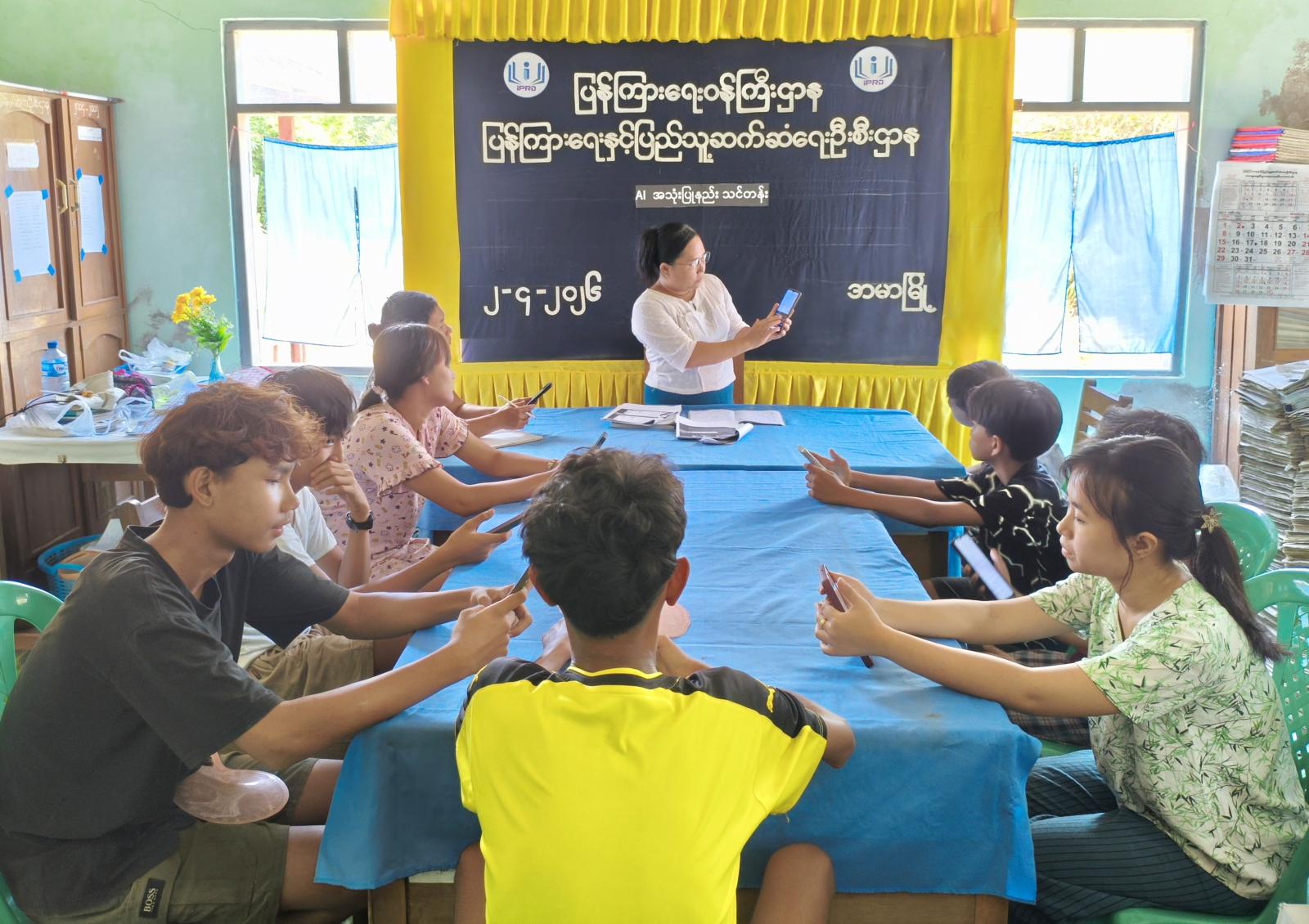 ဧရာဝတီတိုင်းဒေသကြီး၊ ဖျာပုံခရိုင်၊ အမာမြို့၊ Community Centre ခန်းမ၌ AI အသုံးပြုနည်းသင်တန်းကို ဧပြီ ၂ ရက်နေ့နံနက်ပိုင်းတွင် ဖွင့်လှစ်ပို့ချခဲ့ပါသည်။