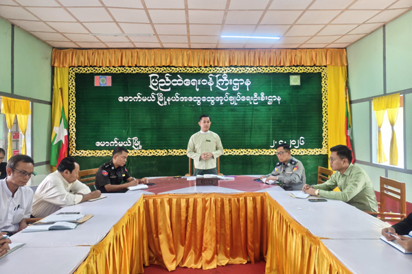 ရှမ်းပြည်နယ်(တောင်ပိုင်း)၊ လင်းခေးခရိုင်၊ မောက်မယ်မြို့နယ် အထွေထွေအုပ်ချုပ်ရေးဦးစီးဌာန အစည်းအဝေးခန်းမ၌ ယမန်နေ့နေ့လယ် ၂ နာရီက မြို့နယ်စီမံခန့်ခွဲရေးနှင့်အုပ်ချုပ်ရေးကော်မတီ ဥက္ကဋ္ဌနှင့်အဖွဲ့ဝင်များ၊ ဌာနဆိုင်ရာတာဝန်ရှိသူများ၊ ရပ်ကွက်/ကျေးရွာအုပ်ချုပ်ရေးမှူးများ၊ မြို့နယ်စိုက်ပျိုးရေးညှိနှိုင်းကြီးကြပ်ရေးအဖွဲ့၊ စိုက်ပျိုးတောင်သူများ၊ စက်သုံးဆီလုပ်ငန်းရှင်များတို့နှင့် လုပ်ငန်းညှိနှိုင်းအစည်းအဝေးကို ကျင်းပပြုလုပ်ခဲ့သည်။