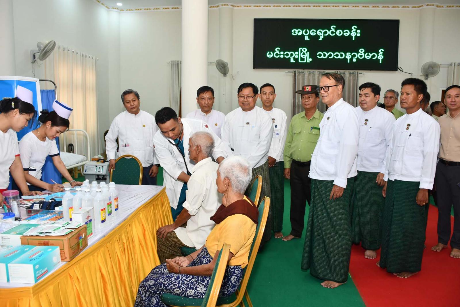 ဦးစွာမကွေးတိုင်းဒေသကြီးလွှတ်တော်ဥက္ကဋ္ဌ ဒေါက်တာမောင်မောင်ဌေးနှင့် တာဝန်ရှိသူများသည် မင်းဘူးမြို့ အမှတ်(၃)ရပ်ကွက်ရှိ သာသနာ့ဗိမာန်သို့ရောက်ရှိပြီး သာသနာ့ဗိမာန်တော်ကြီးအတွင်း၌ အပူရှောင်စခန်းဖွင့်လှစ်ထားရှိမှုနှင့် အပူရှောင်စဉ်ကာလ သက်ကြီးဘိုးဘွားများ နားခိုနိုင်စေရန် နားနေခန်း၊ TV ကြည့်ခန်း၊ စားသောက်ခန်းနှင့် အုပ်ချုပ်ထောက်ပံ့မှုဆိုင်ရာကိစ္စရပ်များ ကြိုတင် ပြင်ဆင်ဆောင်ရွက်ထားရှိမှု၊ အပူဒဏ်ကြောင့် အပူရှောင်သက်ကြီးဘိုးဘွား ပုဂ္ဂိုလ်များအား မလိုလားအပ်သော အကျိုးဆက်များမဖြစ်ပေါ်စေရန် တိုင်းရင်းဆေးပညာဦးစီးဌာနနှင့် ခရိုင်ပြည်သူ့ဆေးရုံကြီးမှ ကျန်းမာရေးစောင့်ရှောက်မှု ဆောင်ရွက်ပေးနေမှု၊ အပူရှောင်စခန်းသို့ လာရောက်ကြသူများ သုတရသစာအုပ်စာပေများနှင့် နေ့စဉ်ထုတ်သတင်းစာများ ဖတ်ရှုလေ့လာနိုင် စေရန် ပြန်ကြားရေးနှင့်ပြည်သူ့ဆက်ဆံရေးဦးစီးဌာနမှ စာအုပ်စာစောင်များ ပြင်ဆင် ဆောင်ရွက်ထားရှိမှုများနှင့် အပူရှောင်စခန်းရှိ သက်ကြီးဘိုးဘွားများအား နေ့လယ်စာဖြင့် ဧည့်ခံကျွေးမွေးဆောင်ရွက်ပေးနေမှုစသည့် အခြေအနေမျာကို လှည့်လည်ကြည့်ရှုပြီး ဘိုးဘွားများအား ရင်းရင်းနှီးနှီးတွေ့ဆုံနှုတ်ဆက်၍ အားပေးစကားများ ပြောကြားခဲ့သည်။