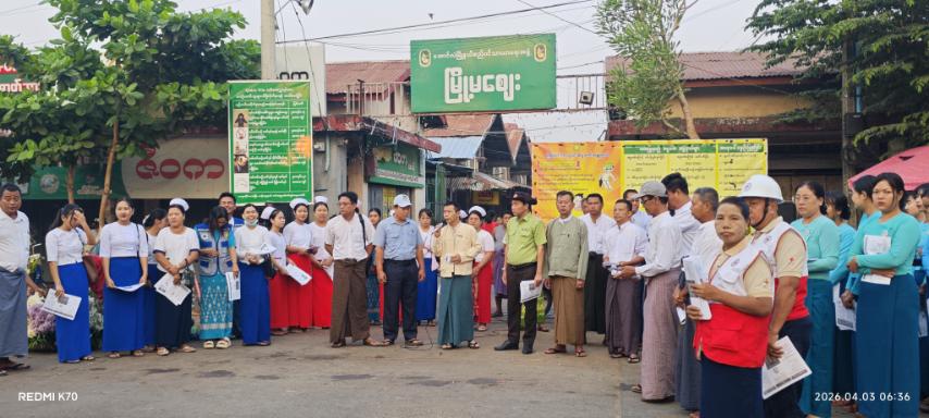 မကွေးတိုင်းဒေသကြီး၊ အောင်လံမြို့နယ်တွင် နွေရာသီကာလအတွင်း ကျရောက်လာနိုင်သည့် အပူဒဏ်အန္တရာယ်များမှ ပြည်သူများ ကြိုတင်ကာကွယ်နိုင်စေရန်ရည်ရွယ်၍ အသိပညာပေး လှုံ့ဆော်ခြင်းနှင့် လက်ကမ်းစာစောင်ဖြန့်ဝေခြင်းလုပ်ငန်းများကို ယနေ့နံနက်ပိုင်းက မြို့မဈေးကြီးနှင့် အများပြည်သူသွားလာရာနေရာများတွင် စုပေါင်းဆောင်ရွက်ခဲ့ကြသည်။