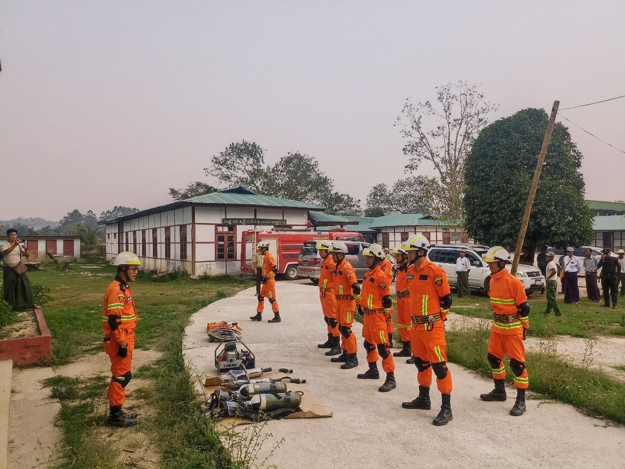 ယင်းနောက် မိုင်းရယ်မြို့နယ် မီးသတ်ဦးစီးဌာနမှ တပ်ဖွဲ့ဝင်များက ငလျင်ဘေးကြုံတွေ့ချိန်တွင် ရှာဖွေကယ်ဆယ်ရေးဆောင်ရွက်မှုများကို တက်ရောက်လာသည့် ပြည်သူများနှင့်အတူ ဇာတ်တိုက်လေ့ကျင့်ခြင်းများ ပြုလုပ်သည်။ ယင်းငလျင်ဘေးအန္တရာယ်အကြောင်းသိကောင်း စရာနှင့် ငလျင်ဘေးကြိုတင်ဇာတ်တိုက် လေ့ကျင့်ခြင်းအခမ်းအနားသို့ မိုင်းရယ်မြို့နယ် စီမံခန့်ခွဲရေးနှင့်အုပ်ချုပ်ရေးကော်မတီဝင်များ၊ ဌာနဆိုင်ရာများ၊ ပြည်သူများစုစုပေါင်း (၇၀) ဦး ခန့်တက်ရောက်ခဲ့ကြောင်း သိရသည်။