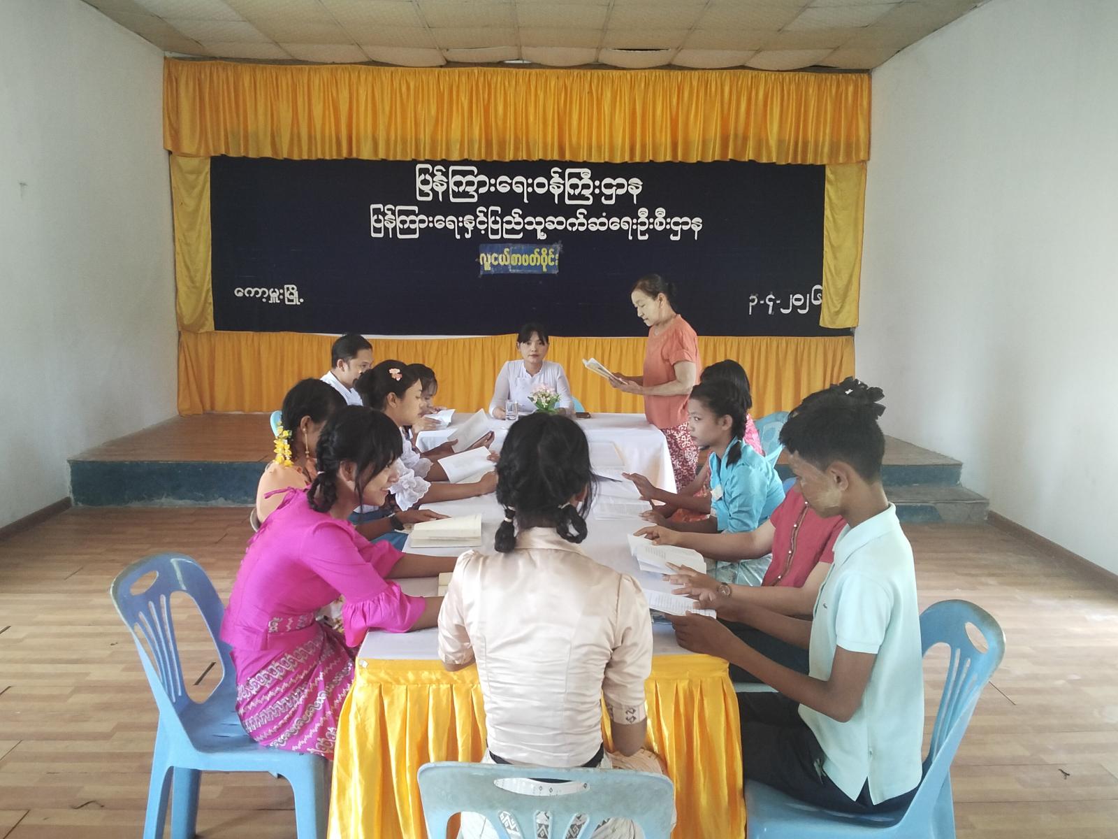 ရန်ကုန်တိုင်းဒေသကြီး တွံတေးခရိုင် ကော့မှူးမြို့နယ် ပြန်ကြားရေးနှင့်ပြည်သူ့ဆက်ဆံရေးဦးစီးဌာန လူထုအခြေပြုဗဟိုဌာန၌ ယနေ့နံနက်ကစာရေးဆရာ လူထုစိန်ဝင်းရေးသားသည့် “လူငယ်နဲ့တာဝန်ယူစိတ်" စာအုပ်ဖြင့် လူငယ်စာဖတ်ဝိုင်းအား ကျင်းပခဲ့ကြောင်းသိရသည်။
