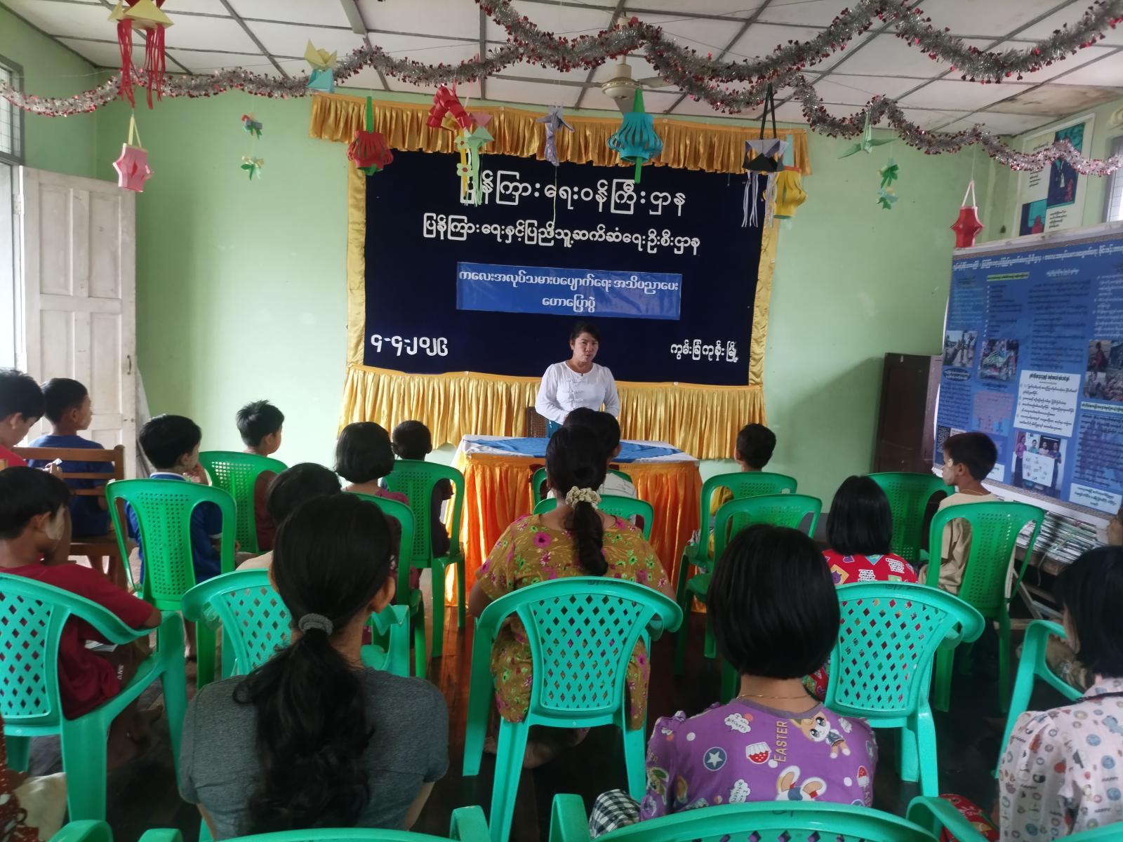 အဆိုပါဟောပြောပွဲတွင် ပြန်ကြားရေးနှင့်ပြည်သူ့ဆက်ဆံရေးဦးစီးဌာနမှ ဒေါ်နန့်ဆွေနွယ်ဦး (ဦးစီးအရာရှိ)က ကျောင်းသား/သူ လူငယ်လူရွယ်များအား ကလေးအလုပ်သမားပပျောက်ရေးနှင့် ပတ်သက်၍ ပြည်သူများ သိရှိနိုင်ရန်ဥပဒေနှင့် ပြစ်မှု/ ပြစ်ဒဏ်များ၊ မြန်မာနိုင်ငံတွင် ကလေးများ အတွက်အကာအကွယ်ပေးထားသည့် ဥပဒေများ၊ ကလေးသူငယ်အခွင့်အရေးဆိုင်ရာ ဥပဒေများ၊ အလုပ်ရုံးများ၌ ကလေးအလုပ်သမားများ၏ အလုပ်အချိန်သတ်မှတ်ထားမှုများ၊ ကလေးအလုပ် သမားများကို ဥပဒေမဲ့အလုပ်ခိုင်းစေခြင်းဖြင့် ချမှတ်နိုင်သည့် ဥပဒေများ၊ ကလေးအလုပ် သမားများသည်အလုပ်ခွင်၌ အချိန်ပြည့်နီးပါး အလုပ်လုပ်ကြရသဖြင့် စိတ်ပိုင်း၊ ရုပ်ပိုင်းဆိုင်ရာ နာကျင်မှုများ မလွဲမသွေခံစားကြရမည်ဖြစ်ကြောင်း၊ ကလေးအလုပ်သမားနှင့်ပတ်သက်၍ ကာကွယ်ပေးထားသည့် ဥပဒေများရှိကြောင်း ရှင်းလင်းပြောကြားခဲ့ကြောင်း သိရသည်။