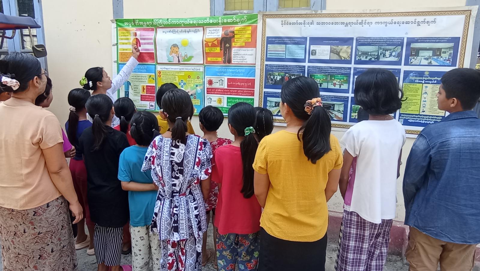 ထိုသို့ဆောင်ရွက်ရာတွင် မြို့နယ်ပြန်ကြားရေးနှင့်ပြည်သူ့ဆက်ဆံရေးဦးစီးဌာန ဒုတိယဦးစီးမှူး ဒေါ်ပြည့်ဖြိုးသူက ကျောင်းသား၊ ကျောင်းသူများအနေဖြင့် စာဖတ်ရှိန်မြင့်မားပြီး ပြည်သူ့စာကြည့်တိုက်နှင့် ရင်းနှီးကျွမ်းဝင်မှုရှိစေရန်၊ အားလပ်ချိန်များတွင် စာပေဖတ်ရှုတတ်သော အလေ့အကျင့်ကောင်းများရရှိစေရန်၊ စာပေဖတ်ရှုလေ့လာခြင်း၏ အကျိုးကျေးဇူးများနှင့် နွေရာသီတွင် ဂရုပြုလိုက်နာရမည့်အချက်များ၊ လူငယ်များသိသင့်သိထိုက်သော ဗဟုသုတအကြောင်းအရာများ၊ အားလပ်ချိန်များတွင် ပြည်သူ့စာကြည့်တိုက်တွင် စာအုပ်စာပေများ လာရောက်ငှားရမ်းဖတ်ရှုကြရန် အသိပညာပေးဟောပြောခဲ့ပြီး၊ ခင်ကျင်းပြသထားသော အပူဒဏ်အန္တရာယ်ကြိုတင်ကာကွယ်ရေး အသိပညာပေးနံရံကပ်စာစောင်နှင့် သဘာဝဘေးအန္တရာယ် ကြိုတင်ကာကွယ်ရေး အသိပညာပေးနံရံကပ်စာစောင်များအား ကျောင်းသား၊ ကျောင်းသူများမှ စိတ်ပါဝင်စားစွာကြည့်ရှုလေ့လာခဲ့ကြကြောင်း သိရှိရသည်။