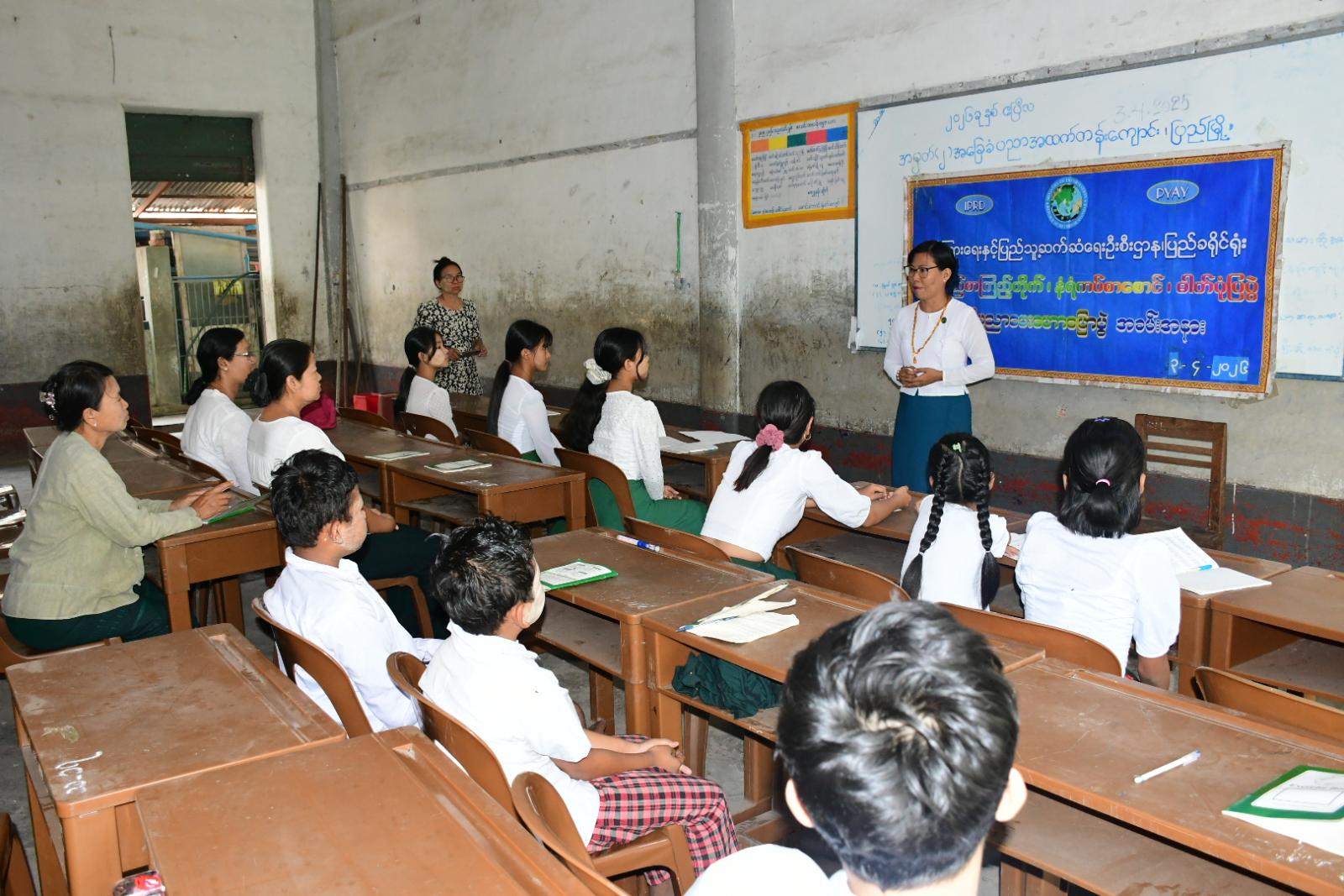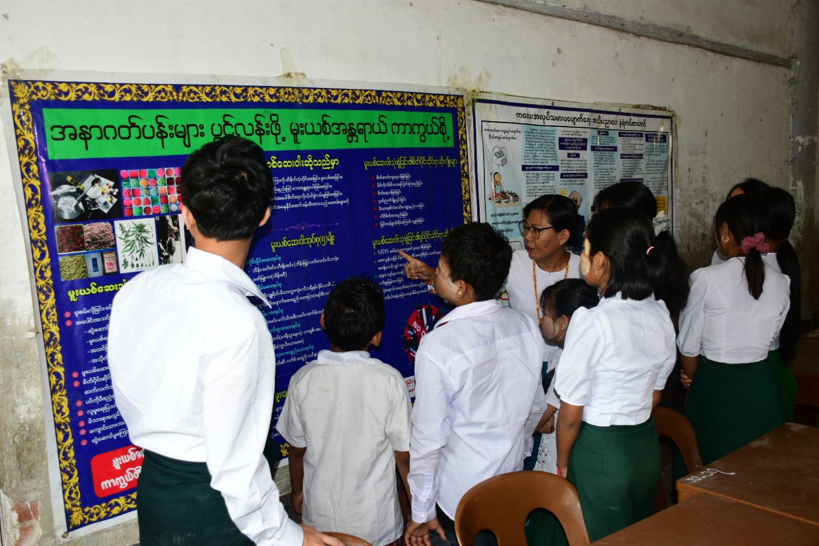 ထိုသို့ဆောင်ရွက်ရာတွင် အဆိုပါကျောင်း၌ ယဉ်ကျေးလိမ္မာသင်တန်းတက်ရောက်နေသော အခြေခံပညာကျောင်းသား၊ ကျောင်းသူများအား ပြည်ခရိုင် ပြန်ကြားရေးနှင့်ပြည်သူ့ဆက်ဆံရေးဦးစီးဌာနမှ ဦးစီးအရာရှိ ဒေါ်အေးအေးမိုးက စာဖတ်ရှိန်မြှင့်တင်ရေးနှင့် လူငယ်ဖွံ့ဖြိုးရေး အသိပညာပေးဆွေးနွေးဟောပြောပြီး ဝန်ထမ်းများက မူးယစ်ဆေးဝါးအန္တရာယ်နှင့် ကလေးအလုပ်သမားပပျောက်ရေးဆိုင်ရာ အသိပညာပေး နံရံကပ်စာစောင်များနှင့် နယ်လှည့်စာကြည့်တိုက် သုံးဘီးယာဉ်မှ သုတ၊ ရသ စာအုပ်၊ စာစောင်များကို ကျောင်းသား၊ ကျောင်းသူများ ဖတ်ရှုလေ့လာရန် ဆောင်ရွက်ပေးခဲ့ကြောင်း သိရသည်။