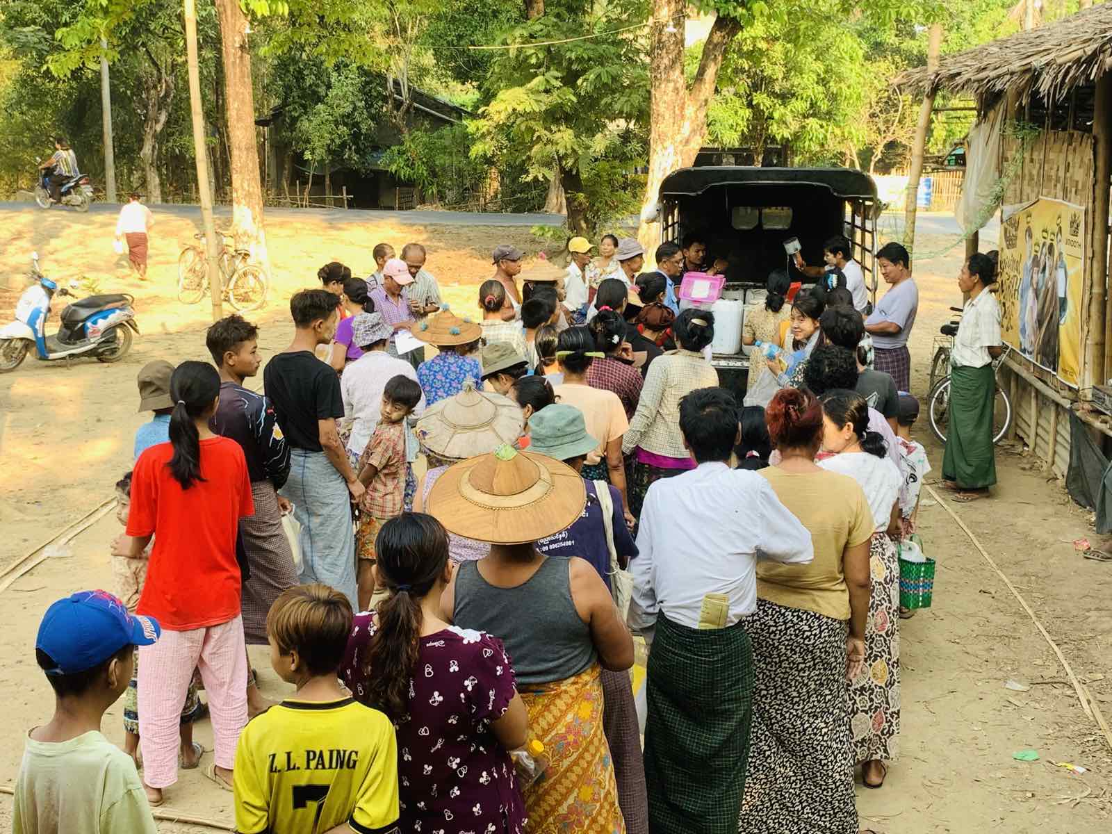 ဧရာဝတီတိုင်းဒေသကြီး ဟင်္သာတခရိုင်၊ ဟင်္သာတမြို့နယ်တွင် စားအုန်းဆီ ဖြန့်ဖြူးရောင်းချမှုကြီးကြပ်ရေးအဖွဲ့သည် နေ့စဉ်ကျေးရွာများအရောက် ဈေးကားဖြင့် လှည့်လည်ရောင်းချပေးလျက်ရှိရာ ယမန်နေ့က ဟင်္သာတမြို့နယ် ပိတောက်ကုန်းကျေးရွာအုပ်စုရှိ မြစိမ်းရောင်ဈေးတွင် ပြည်သူ (၃၀၀)ဦးတို့အား သွားရောက်ဖြန့်ဖြူးရောင်းချပေးခဲ့ကြောင်း သိရသည်။