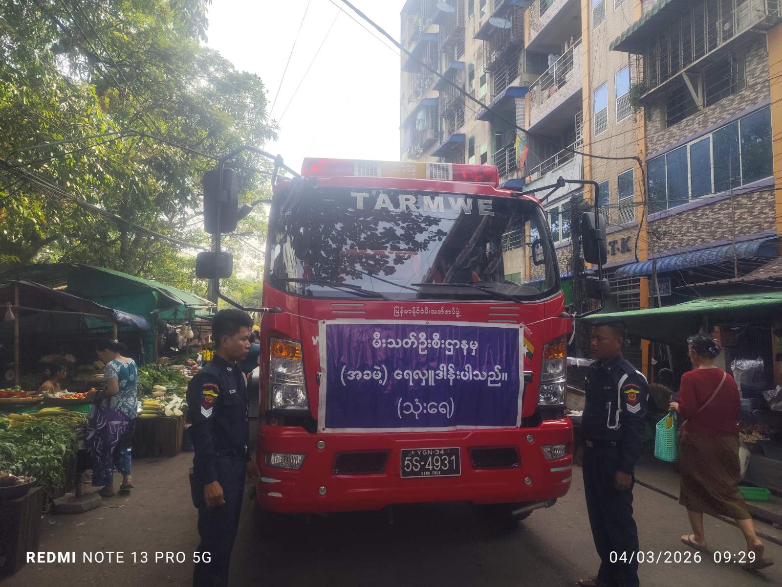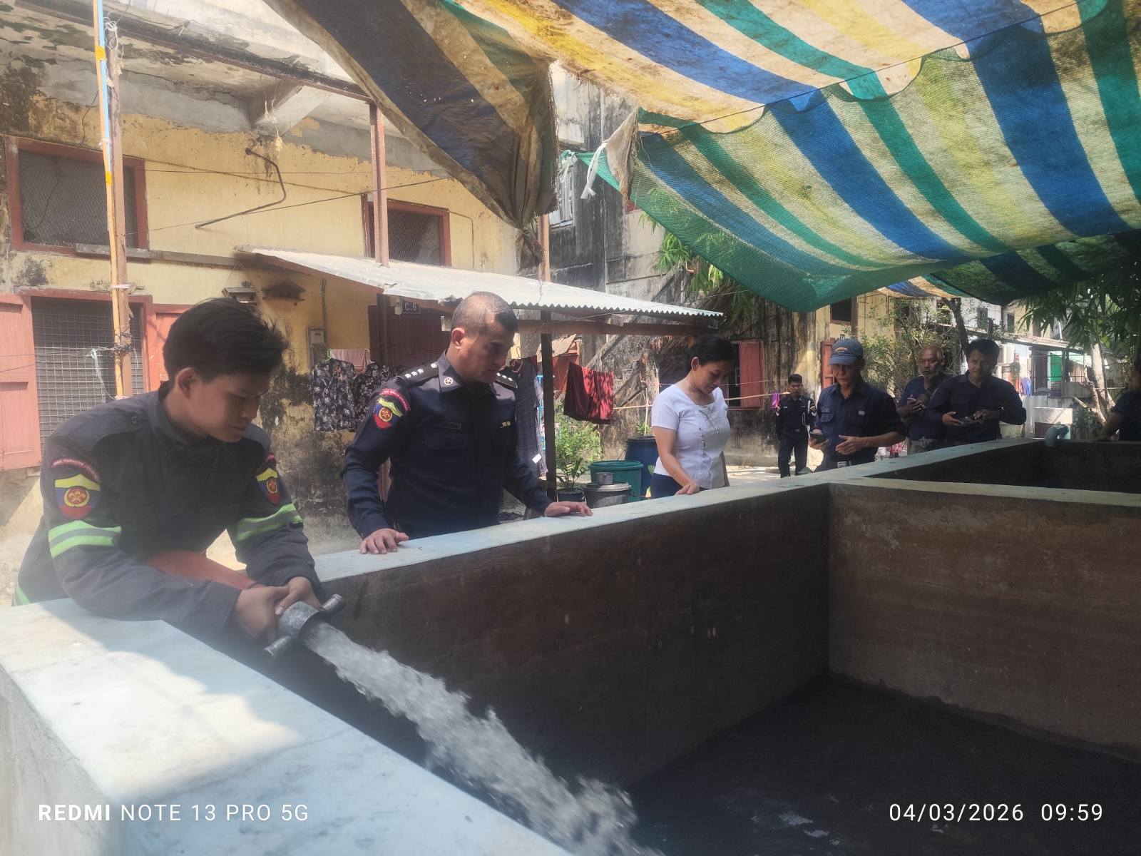 သို့ဖြစ်ပါ၍ သုံးရေလိုအပ်ချက်ရှိသော ပြည်သူများအား ဗိုလ်တထောင်မြို့နယ် စီမံခန့်ခွဲရေးနှင့်အုပ်ချုပ်ရေးကော်မတီဥက္ကဋ္ဌ ဦးစိုးလှိုင်မောင်ဦးဆောင်၍ အဖွဲ့ဝင်များ၊ တာမွေမြို့နယ် မီးသတ်ဦးစီးမှူးရုံးမှ မြို့နယ်မီးသတ်ဦးစီးမှူး ဦးမျိုးညီညီနှင့် သန္ဓေတပ်ဖွဲ့ဝင် ၄ ဦး၊ မြို့နယ်စည်ပင်သာယာရေးအဖွဲ့ဝင်များ၊ ရပ်ကွက်အုပ်ချုပ်ရေးမှူးများနှင့် အတူပူပေါင်း၍ တာမွေမြို့နယ် မီးသတ်စခန်းမှ 5S-4931 HOWO မီးသတ်ရေသယ်ယာဉ်ဖြင့် ရေဂါလန်(၄၀၀၀)ခန့်အသုံးပြု၍ ရေပေးဝေလှူဒါန်းခြင်းများ ဆောင်ရွက်ခဲ့ကြောင်း သတင်းရရှိသည်။