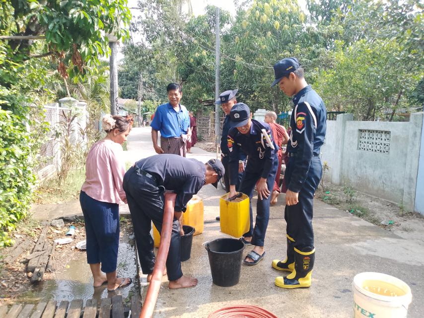 ပူပြင်းခြောက်သွေ့သော နွေရာသီတွင် ပြည်သူများ သောက်သုံးရေပြတ်လပ်မှုမရှိစေရေးအတွက် ရန်ကုန်တိုင်းဒေသကြီး၊ သန်လျင်ခရိုင်၊ သုံးခွမြို့နယ်၊ အထွေထွေအုပ်ချုပ်ရေးဦးစီးဌာနနှင့် မီးသတ်ဦးစီးဌာနတို့ပူးပေါင်း၍ ရပ်ကွက်ကျေးရွာများသို့ ယမန်နေ့နံနက်ပိုင်းအချိန်က သောက်သုံးရေများ သွားရောက်လှူဒါန်းခဲ့ကြောင်း သိရသည်။