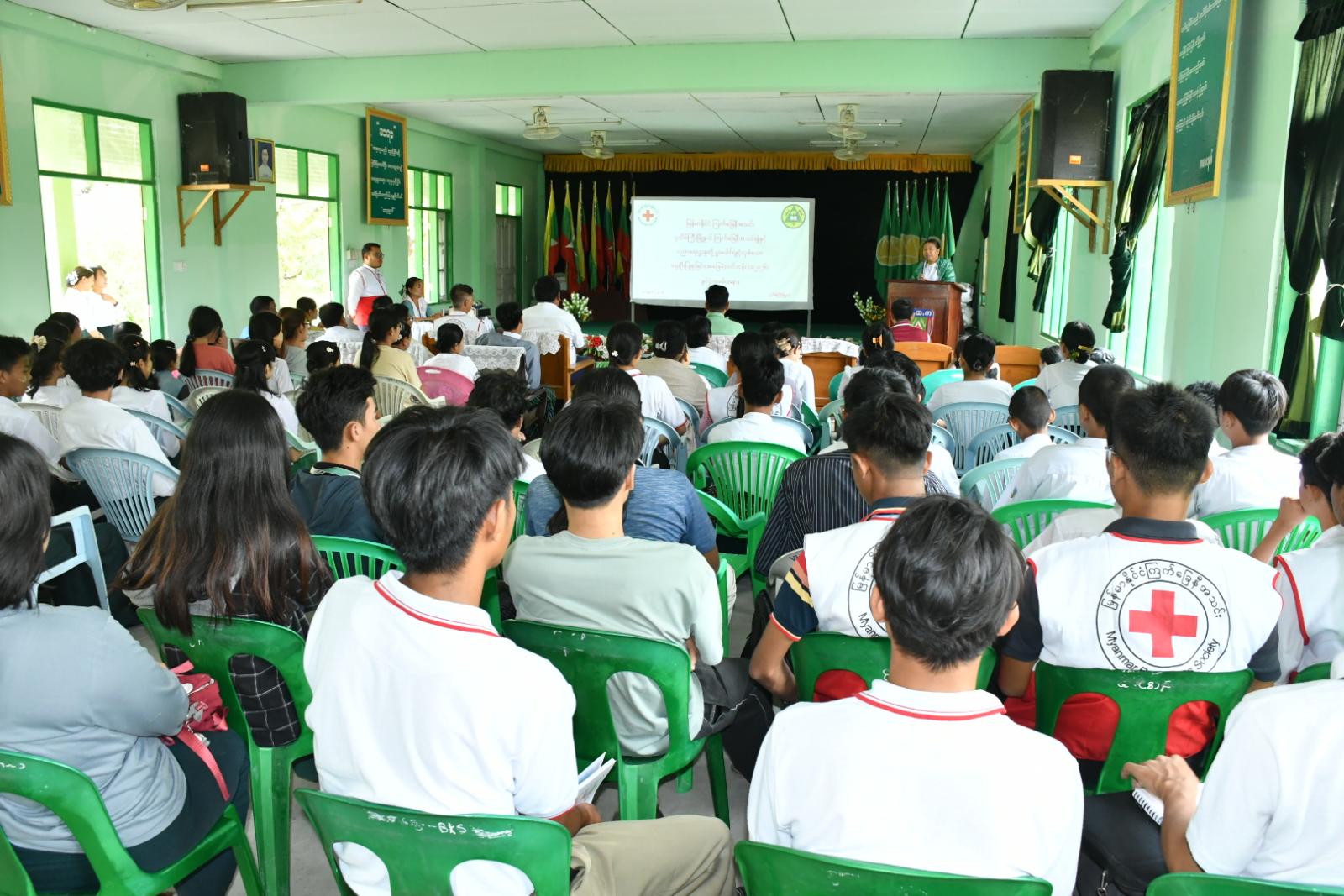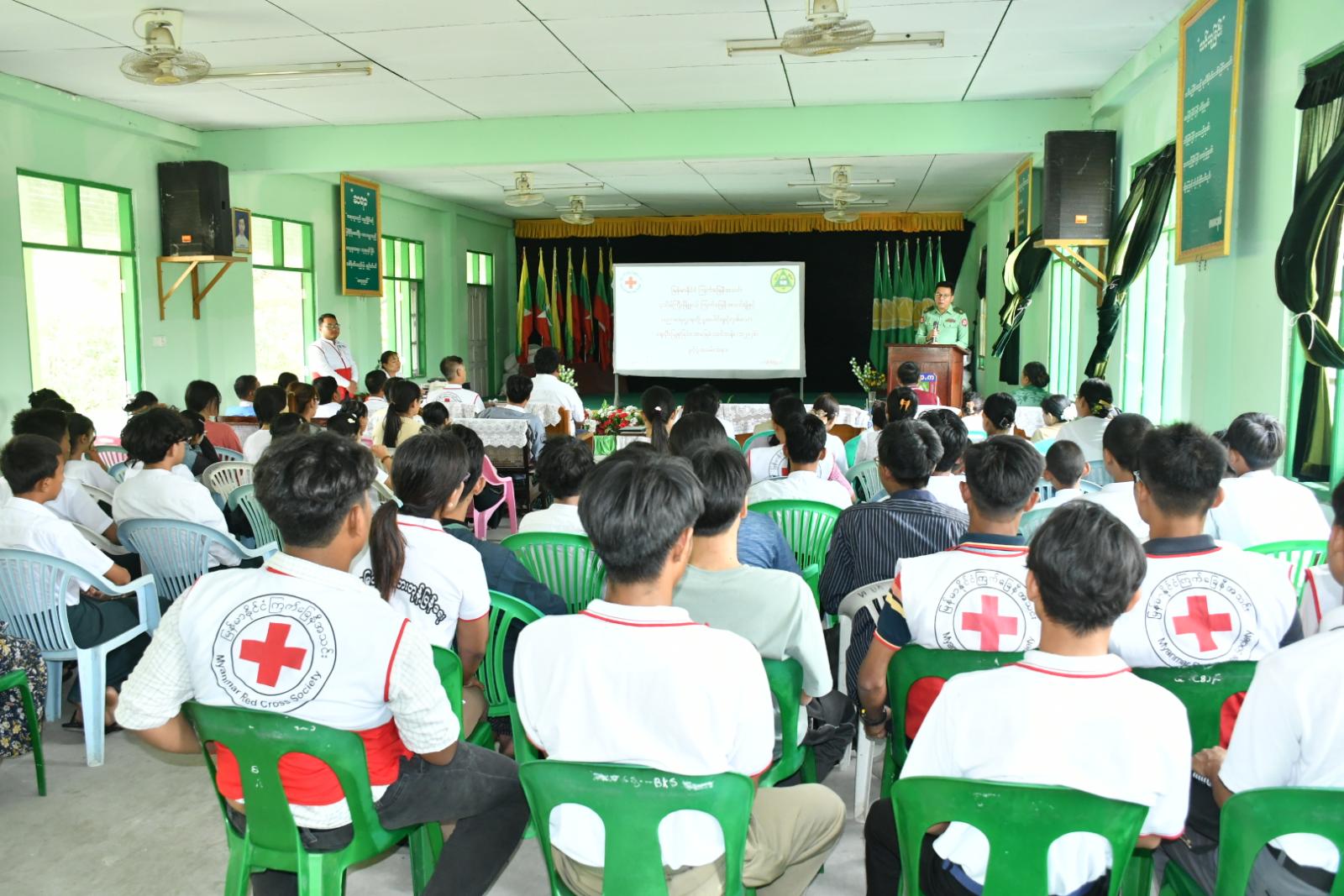 ဦးစွာ မြို့နယ်စီမံခန့်ခွဲရေးနှင့် အုပ်ချုပ်ရေးကော်မတီအဖွဲ့ဝင် ဗိုလ်မှူးဝေယံမင်းက အဖွင့်အမှာစကားပြောကြားပြီး၊ မြို့နယ်ပညာရေးမှူး ဒေါ်ချောစုခိုင်က သင်တန်းဖွင့်လှစ် ပေးမှုအပေါ် ကျေးဇူးတင်စကား ပြန်လည်ပြောကြားသည်။ ထို့နောက် မြို့နယ်ကြက်ခြေနီ အသင်းခွဲသို့ မြို့နယ်ပညာရေးမှူးရုံးမှ အလှူငွေပေးအပ်လှူဒါန်းရာ မြို့နယ်ကြက်ခြေနီအသင်းခွဲဥက္ကဋ္ဌ ဒေါ်သက်မာဝင်းက လက်ခံရယူ၍ ဂုဏ်ပြုမှတ်တမ်းလွှာ ပြန်လည်ပေးအပ်သည်။