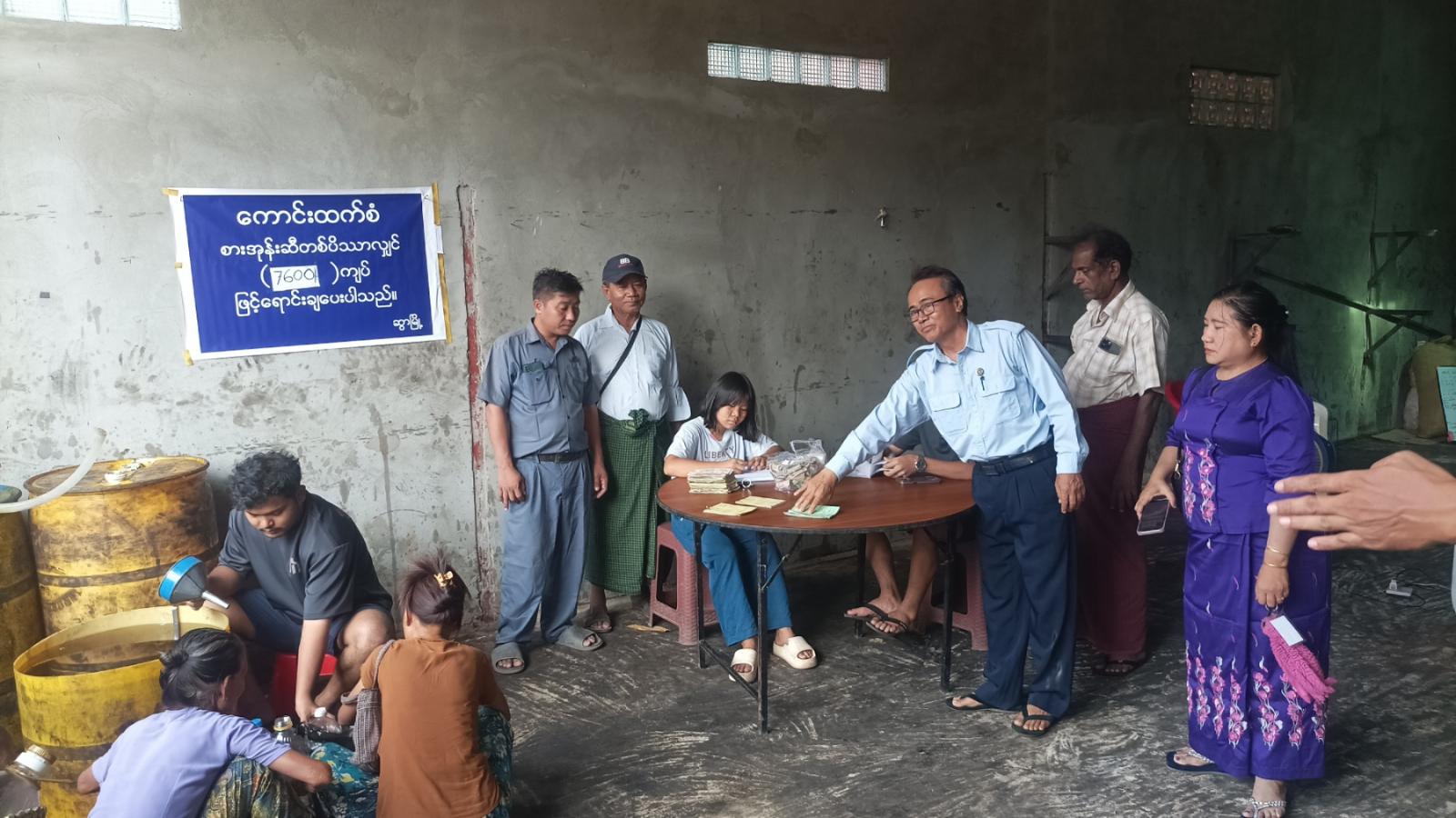 ထို့သို့ မြေပြင်ကွင်းဆင်းစစ်ဆေးရာတွင် ခွဲတမ်းရစားအုန်းဆီများရောင်းချသည့် လက်လီဆိုင်များအနေဖြင့် သတ်မှတ်ထားသောစျေးနှုန်းဖြင့် အိမ်ထောင်စုအလိုက်အား စားအုန်းဆီဝယ်ယူခွင့်စာအုပ်များဖြင့် စနစ်တကျရောင်းချပေးလျက်ရှိကြောင်းနှင့် နေ့စဉ်ရောင်းချသည့်စျေးနှုန်းများကိုလည်း ဗီနိုင်းများဖြင့် စနစ်တကျချိတ်ဆွဲရောင်းချပေးနေမှုကို စစ်ဆေးတွေ့ရှိကြောင်း သိရသည်။