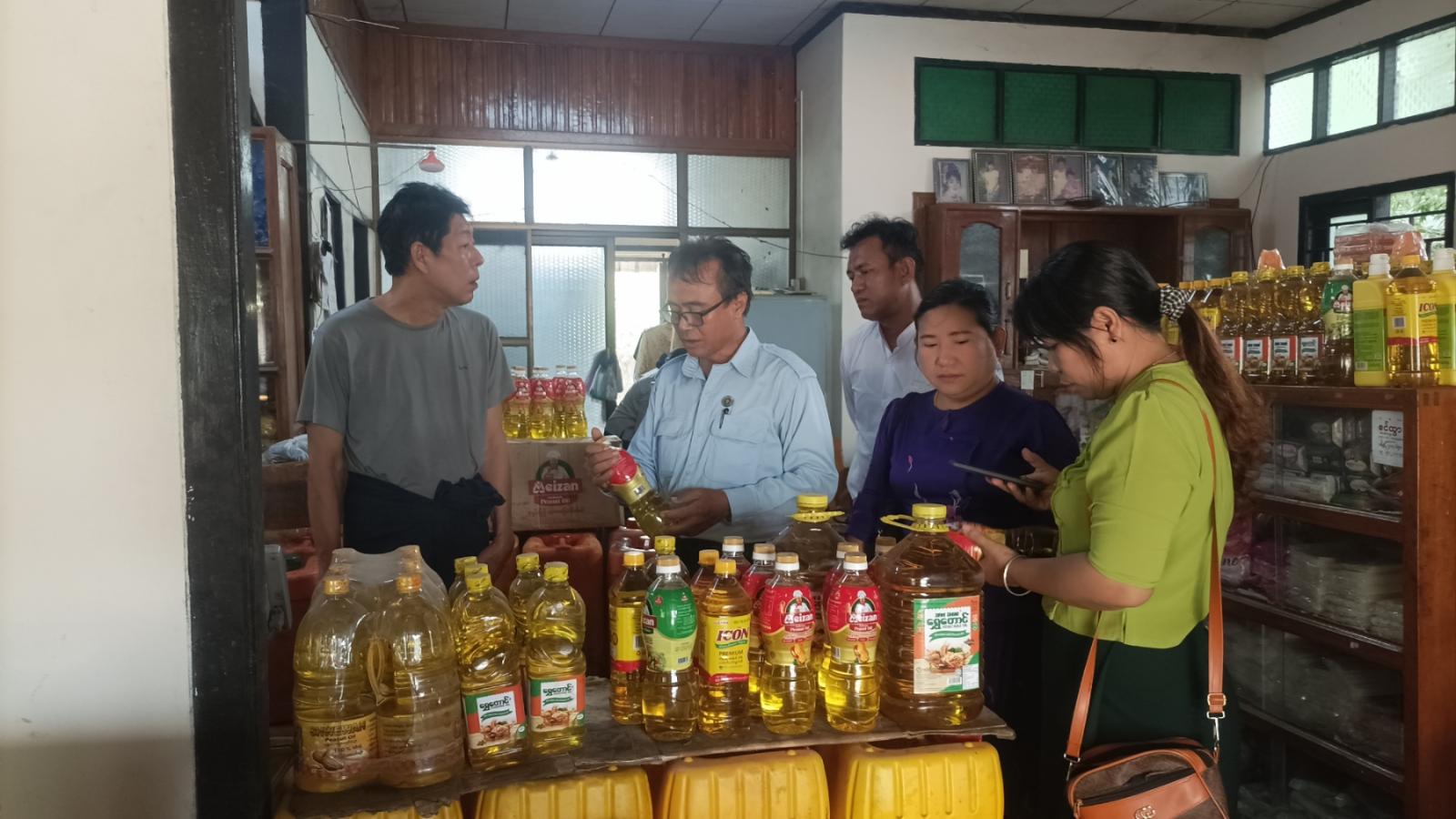 ပဲခူးတိုင်းဒေသကြီး၊ တောင်ငူခရိုင်၊ ရေတာရှည်မြို့နယ်တွင် ခရိုင်စားသုံးသူရေးရာဦးစီးဌာနမှ ခရိုင်ဦးစီးမှူးနှင့် ဝန်ထမ်းများမှ ယမန်နေ့ နံနက်ပိုင်းက ဆွာ၊ သာဂရ၊ ရေနီမြို့ရှိ စားအုန်းဆီလက်လီ/ လက်ကားအရောင်းဆိုင်များ၌ ပြည်သူများထံ သတ်မှတ်ရည်ညွှန်းဈေးနှုန်းဖြင့် ခွဲတမ်းရစားအုန်းဆီများရောင်းချပေးမှု ရှိ/ မရှိ အခြေအနေအား မြေပြင်ကွင်းဆင်းစစ်ဆေးခဲ့သည်။