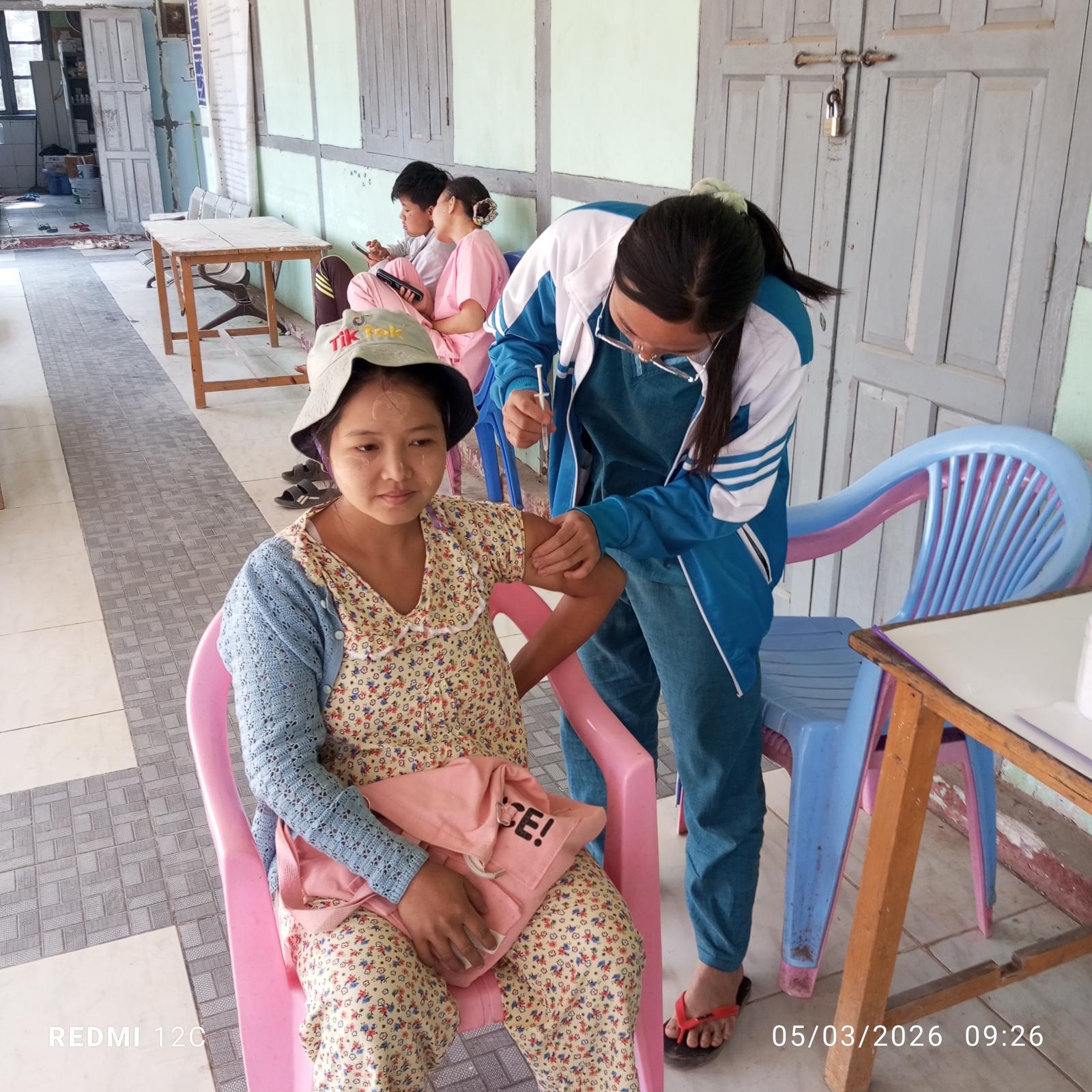 ထို့သို့ကာကွယ်ဆေးထိုးနှံပေးရာတွင် အသက်(၂)နှစ် အောက်ကလေးငယ်များကို အသက်အရွယ်အပိုင်းအခြားအလိုက် ပုံမှန်ကာကွယ် ဆေးများဖြစ်သည့် ဆုံဆို့၊ ကြက်ညှာ၊ မေးခိုင်၊ အသည်းရောင် အသားဝါ(ဘီ)ပိုး၊ ဦးနှောက် အမြှေးရောင် ငါးမျိုးစပ်ကာ ကွယ်ဆေး၊ ပိုလီယိုအကြောသေ၊ ဝက်သက်၊ ဂျိုက်သိုးရောဂါကာကွယ်ဆေးထိုးနှံပေးခြင်း၊ ပြင်းထန်ဝမ်းပျက်ဝမ်းလျှောဖြစ်စေတတ်သော ရိုတ(Rota)ကာ ကွယ်ဆေးတိုက်ကျွေးခြင်းနှင့်ကိုယ်ဝန်ဆောင် မိခင်များအား မေးခိုင်၊ ဆုံဆို့ ကာကွယ်ဆေးထိုးနှံပေးခြင်း၊ အသက်(၅)နှစ်အောက်ကလေးငယ်များအား ပိုလီယိုကာကွယ်ဆေး ထိုးနှံပေးခြင်း၊ ကိုယ်ဝန်ဆောင်များအား ကိုယ်အလေးချိန်တိုင်းပေးခြင်း၊ ကာကွယ်ဆေးများ ထိုးနှံ ပေးခြင်းနှင့် မြို့နယ်အတွင်းရှိ ကျေးလက်ကျန်းမာရေးဌာနများ၊ သတ်မှတ်ထားသည့်နေရာများတွင် လစဉ်ပုံမှန်ကာကွယ်ဆေးထိုးနှံတိုက် ကျွေးခြင်းများ ဆောင်ရွက်ပေးလျက်ရှိကြောင်း သိရသည်။
