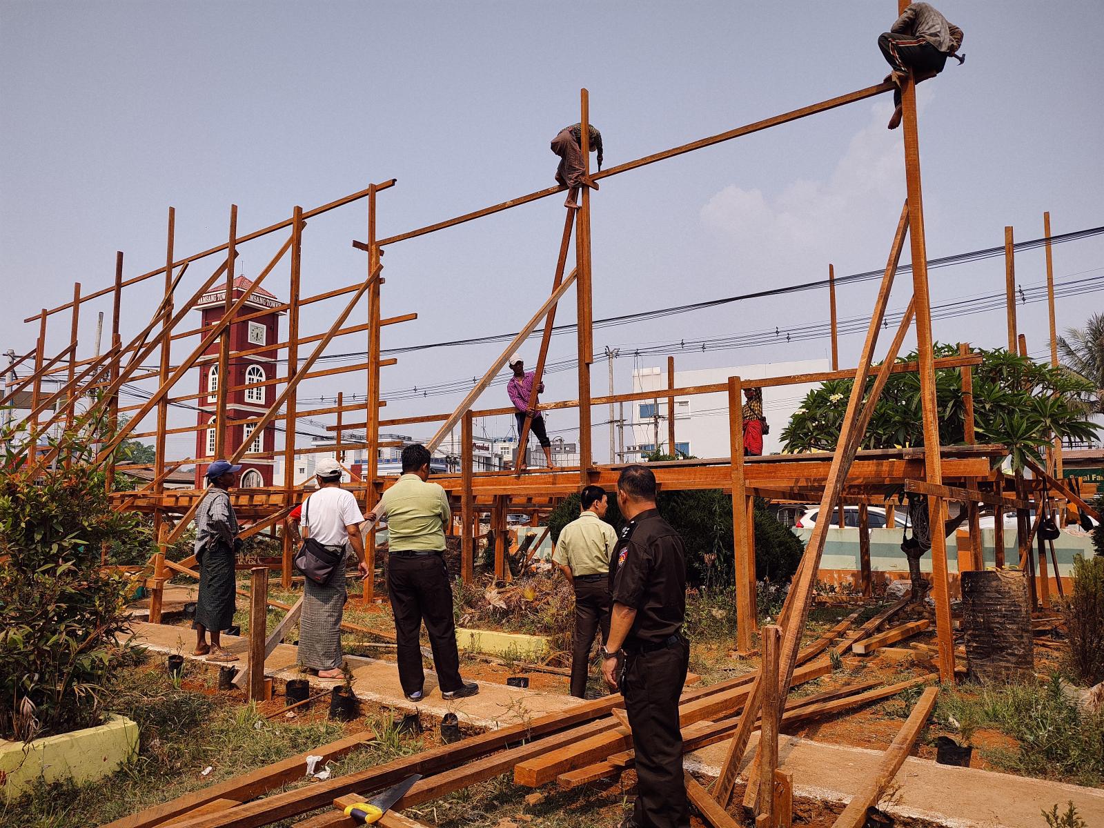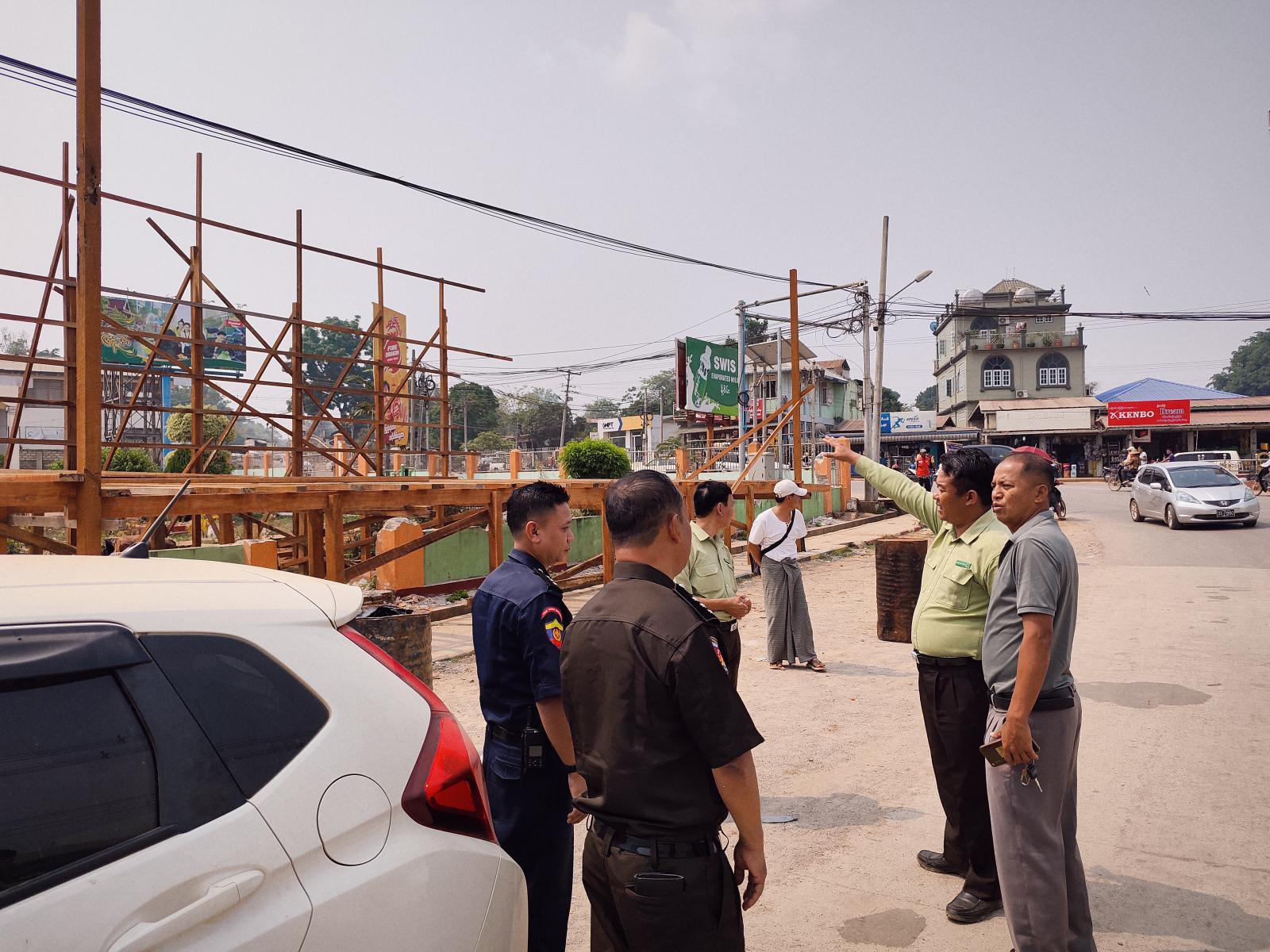 အဆိုပါ ဗဟိုမဏ္ဍပ်နှင့် ရေကစားမဏ္ဍပ်ဆောက်လုပ်နေမှုကို ယနေ့နံနက် ၁၀ နာရီခွဲက မဟာသင်္ကြန်ပွဲတော်ဖြစ်မြောက်ရေးဦးစီးကော်မတီ ဒုတိယဥက္ကဋ္ဌ၊ ဒုတိယခရိုင်အုပ်ချုပ်ရေးမှူး ဦးသန်းဌေး၊ မြို့နယ်စီမံခန့်ခွဲရေးနှင့် အုပ်ချုပ်ရေးကော်မတီဥက္ကဋ္ဌ ဦးနေမျိုးထွန်းနှင့် တာဝန်ရှိသူများက ကွင်းဆင်း၍ တာဝန်ရှိသူများက လုပ်ငန်းကော်မတီအလိုက် ဆောင်ရွက်နေမှုအား ကြည့်ရှုစစ်ဆေးကာ လိုအပ်သည်များ ကြီးကြပ်ဆောင်ရွက်ပေးခဲ့ကြောင်း သိရသည်။