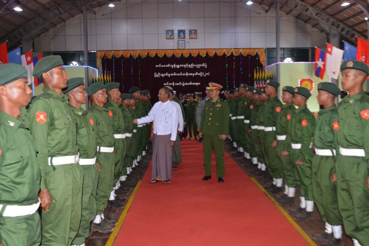 အခမ်းအနားတွင် ရှမ်းပြည်နယ်ဝန်ကြီးချုပ် ဦးအောင်အောင်၊ အရှေ့ပိုင်းတိုင်းစစ်ဌာနချုပ် တိုင်းမှူး ဗိုလ်မှူးချုပ် ကျော်နိုင်ဦး၊ တပ်မတော်ကွန်ပျူတာနှင့် နည်းပညာသိပ္ပံ ခေတ္တကျောင်းအုပ်ကြီး ဗိုလ်မှူးကြီး သန်းနိုင်လွင်နှင့် အရာရှိကြီးများ၊ ပအိုဝ်းကိုယ်ပိုင်အုပ်ချုပ်ခွင့်ရဒေသ ဦးစီးအဖွဲ့ဥက္ကဋ္ဌ ဦးခွန်ရဲထွေးနှင့် အဖွဲ့ဝင်များ၊ မြို့နယ်စီမံခန့်ခွဲရေးနှင့်အုပ်ချုပ်ရေးကော်မတီ အဖွဲ့ဝင်များ၊ ဒေသ/ မြို့နယ်အဆင့်ဌာနဆိုင်ရာများ၊ ရပ်ကွက်/ကျေးရွာအုပ်စု အုပ်ချုပ်ရေးမှူးများ၊ ဖိတ်ကြားထားသည့် ဧည့်သည်များ၊ ဒေသခံပြည်သူများနှင့် ပြည်သူ့စစ်မှုထမ်းသင်တန်းသားများ တက်ရောက်ကြပြီး သင်တန်းဆင်းပွဲတွင် သင်တန်းဆင်းစစ်ရေးပြ အစီအစဉ်အတိုင်း ဆောင်ရွက်ခဲ့ကြသည်။
