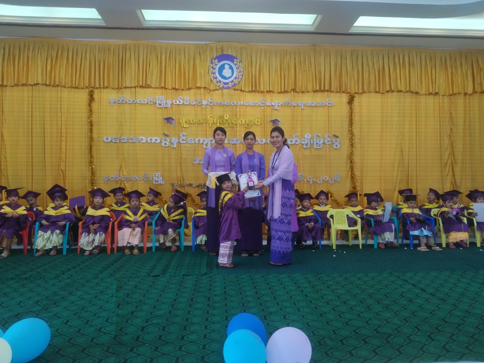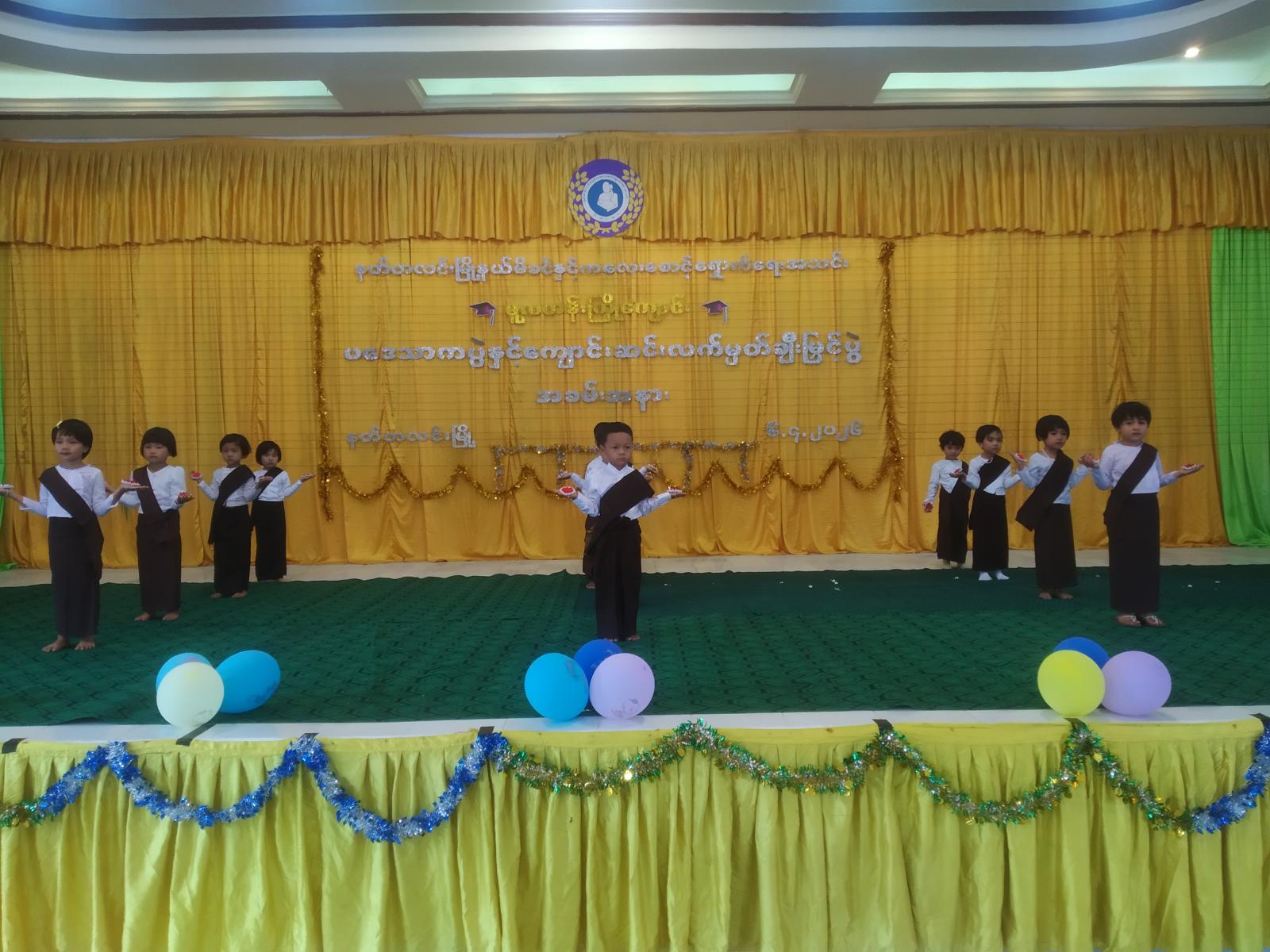 ထို့နောက် ခရိုင်မိခင်နှင့်ကလေးစောင့်ရှောက်မှုကြီးကြပ်ရေးအဖွဲ့ဥက္ကဋ္ဌ ဒေါ်ဥမ္မာမြင့်၊ မြို့နယ်မိခင်နှင့်ကလေးစောင့်ရှောက်ရေးအသင်းဥက္ကဋ္ဌ ဒေါ်ငုံဖူးဝေမြင့်၊ ဌာနဆိုင်ရာများ၊ မြို့နယ်မိခင်နှင့်ကလေးစောင့်ရှောက်ရေးအသင်းအဖွဲ့ဝင်များမှ သားငယ်သမီးငယ် (၃၅)ဦးတို့အား ကျောင်းဆင်းလက်မှတ်များ ချီးမြှင့်ပေးခဲ့ပြီး ကျောင်းသား၊ ကျောင်းသူ သားငယ်၊ သမီးငယ်လေးများမှ ပဒေသာကပွဲများဖြင့် ကပြဖျော်ဖြေခဲ့ကြကြောင်း သိရသည်။