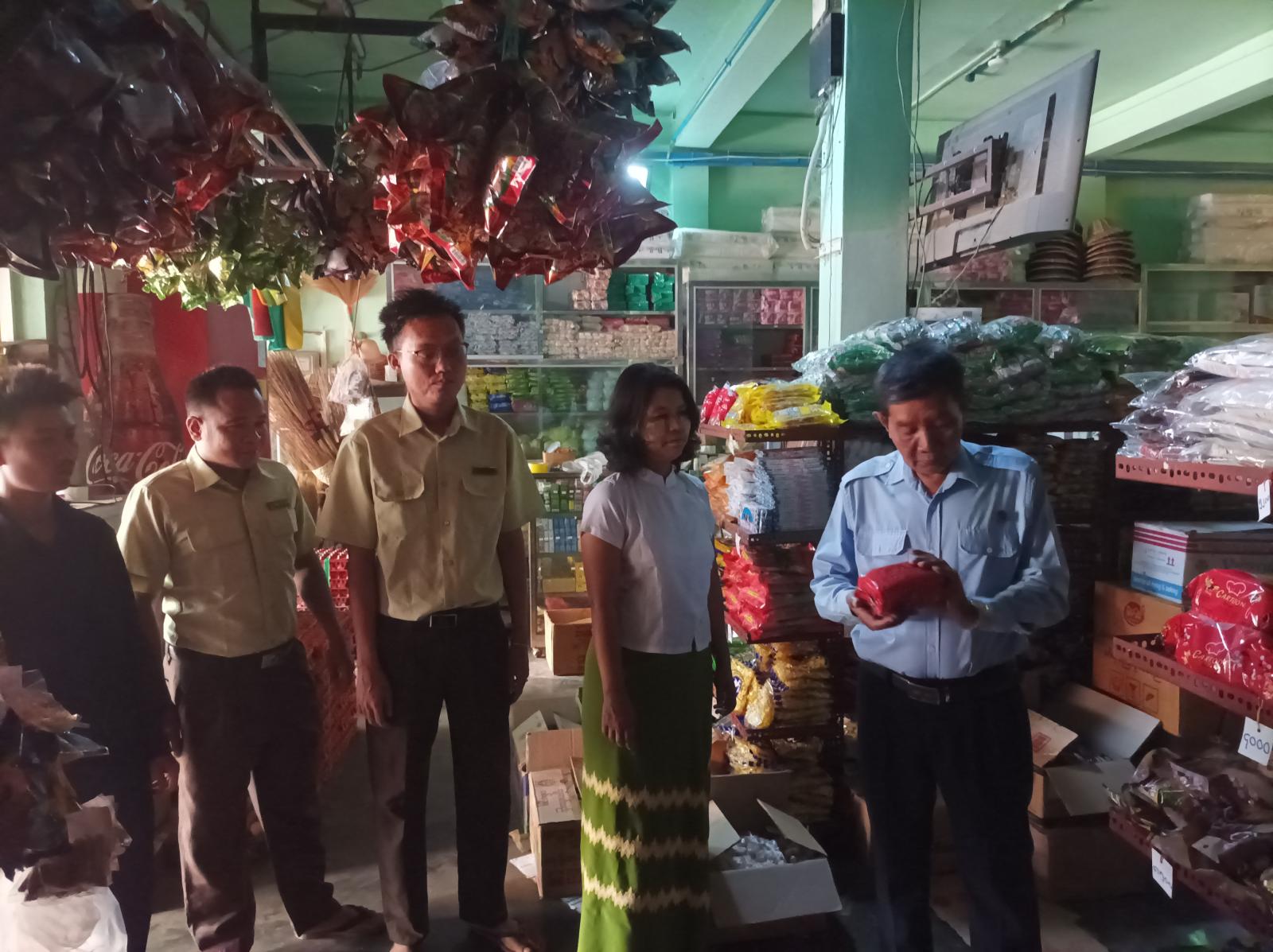 ထိုသို့ စစ်ဆေးရာတွင် ဆင်ပေါင်ဝဲမြို့နယ်အတွင်းရှိ အသင့်စားမုန့်များ ရောင်းချနေသည့် မြို့မစျေး အတွင်း/ အပြင်ရှိ အရောင်းဆိုင်များအား စားသုံးသူရေးရာဦးစီးဌာနမှ သတ်မှတ်ရည်ညွှန်းစျေးများအား လစဥ်ထုတ်ပြန်ပေးလျက်ရှိကြောင်း၊ ၎င်းစျေးနှုန်းထက်စျေးနှုန်းမြှင့်တင် ရောင်းချမှုဖြန့်ဖြူးခြင်း၊ စျေးကစားရန် ရည်ရွယ်ချက်ဖြင့် သိုလှောင်ခြင်းမပြုရန်နှင့် သက်ဆိုင်ရာဌာနတို့၏ လမ်းညွှန်ချက်များကို လိုက်နာဆောင်ရွက်ရန် လိုအပ်ကြောင်း အသိပညာပေး ဆွေးနွေးပြောကြားခဲ့ကြောင်း သိရသည်။
