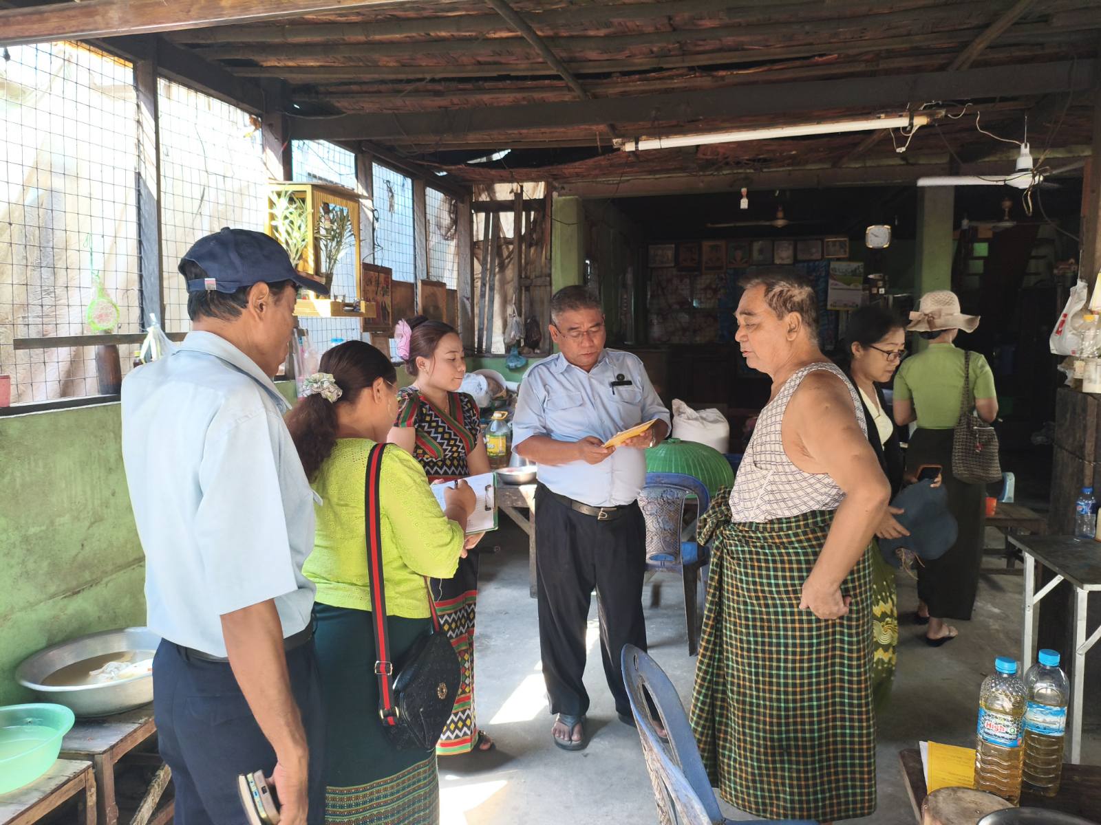 ထိုသို့ ကွင်းဆင်းစစ်ဆေးခဲ့ရာတွင် မြို့နယ်အထွေထွေအုပ်ချုပ်ရေးဦးစီးဌာနမှ တာဝန်ရှိသူများ၊ မြို့နယ်စီမံကိန်းဦးစီးဌာနမှ တာဝန်ရှိသူများ၊ မြို့နယ်စည်ပင်သာယာရေးအဖွဲ့မှ လက်ထောက်ညွှန်ကြားရေးမှူး ဦးတင်ထွန်းအောင်၊စားသုံးသူရေးရာဦးစီးဌာနမှ မြို့နယ်တာဝန်ခံ ဦးတင်မင်း၊ စားအုန်းဆီ လက်လီ/လက်ကားကိုယ်စားလှယ်များနှင့်အတူ စားအုန်းဆီဖြန့်ဖြူးရောင်းချပေးလျက်ရှိသော လက်ခိုက်ကျေးရွာ၊ မကျီးတန်းရပ်ကွက်၊ ကျိုက်ထော် (မြောက်) ကျေးရွာ၊ ငှက်အော်စမ်းကျေးရွာ၊ အဖျောက်ကျေးရွာများ၌ စားအုန်းဆီရောင်းချသူများအား စားအုန်းဆီသတ်မှတ်ခွဲတမ်း အတိုင်းအပြည့်အဝရရှိမှု ရှိ/မရှိနှင့် သတ်မှတ်ဈေးနှုန်းအတိုင်းရောင်းချမှုရှိမရှိတို့အား လိုက်လံစစ်ဆေးနေကြပြီး စားသုံးသူပြည်သူများ ဈေးနှုန်းမှန်ကန်စွာဖြင့် အခက်အခဲမရှိ ဝယ်ယူစားသုံးနိုင်ရေးအတွက် သတ်မှတ်စားအုန်းဆီခွဲတမ်းများ လုံလောက်စွာ ချထားပေးခဲ့ပြီး သတ်မှတ်အခြေခံ လက်ကားရည်ညွှန်းဈေးအား အပတ်စဉ်တနင်္လာနေ့တိုင်း ထုတ်ပြန်ပေးလျက်ရှိကြောင်း မိမိတို့ရပ်ကွက်အတွက် ရရှိသည့် စားအုန်းဆီခွဲတမ်းအား ဈေးနှုန်းမြှင့်တင်ရောင်းချခြင်း၊ ဈေးကစားရန်ရည်ရွယ်ချက်ဖြင့် သိုလှောင်ထားခြင်းများ မပြုလုပ်ကြရန် အသိပညာပေးဆွေးနွေးပြောကြားခဲ့ပြီး စားအုန်းဆီထုတ်ယူခွင့်စာအုပ်ဖြင့် စားအုန်းဆီဖြန့်ဖြူးရောင်းချနေမှု အခြေအနေအား ကွင်းဆင်းစစ်ဆေးခဲ့ကြောင်း သိရသည်။
