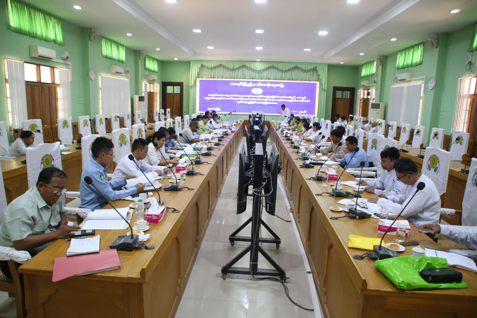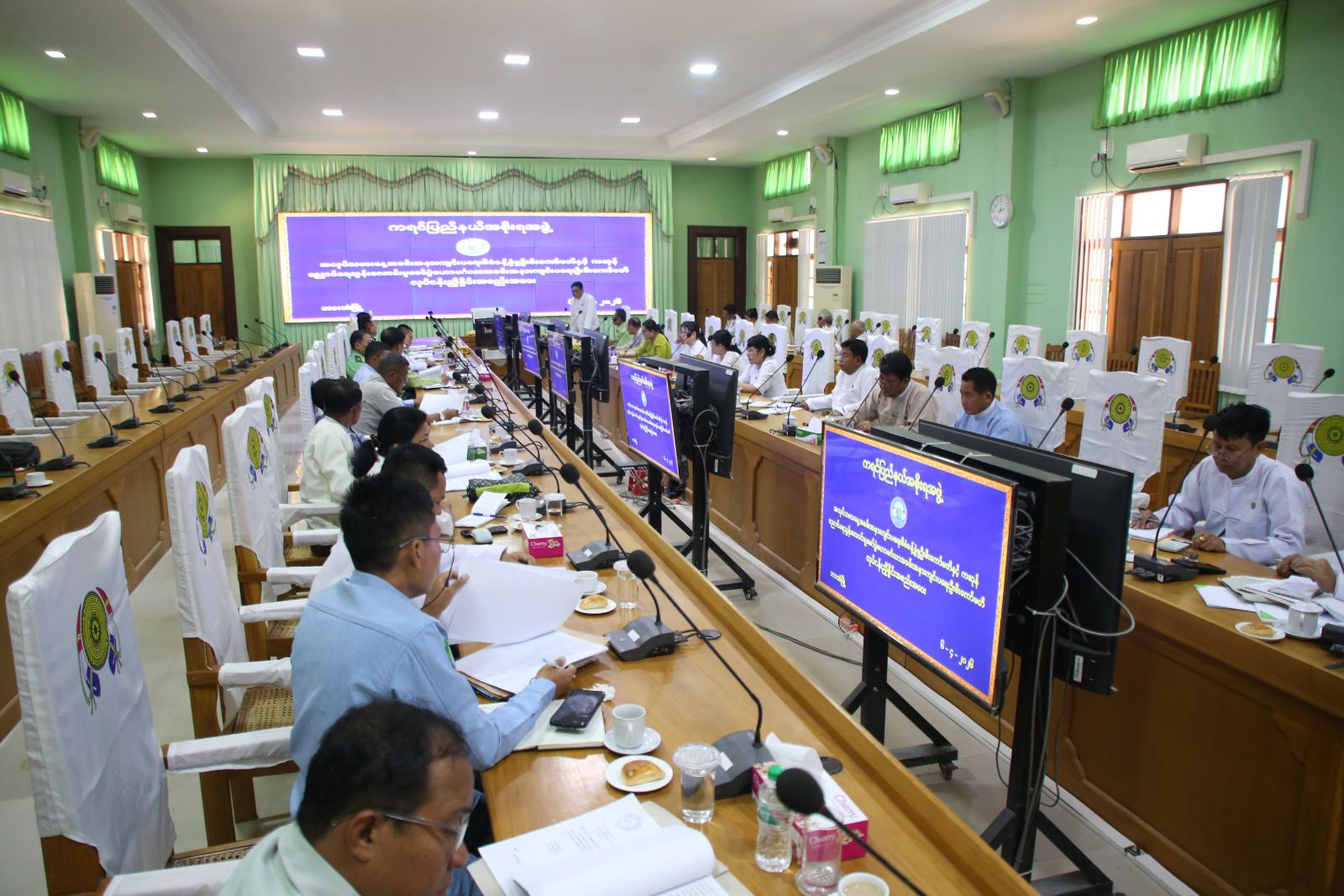 ကရင်ပြည်နယ် အလုပ်သမားနေ့အခမ်းအနားကျင်းပရေးစီမံခန့်ခွဲမှုဦးစီးကော်မတီနှင့် ကဆုန်ညောင်ရေသွန်းလောင်းပူဇော်ပွဲ မဟာမင်္ဂလာအခမ်းအနားကျင်းပရေးဦးစီးကော်မတီ လုပ်ငန်းညှိနှိုင်းအစည်းအဝေးကို ယမန်နေ့ မွန်းလွဲ ၂ နာရီက ဘားအံမြို့ပြည်အစိုးရအဖွဲ့ရုံး အစည်းအဝေး ခန်းမ(၂)၌ ကျင်းပသည်။