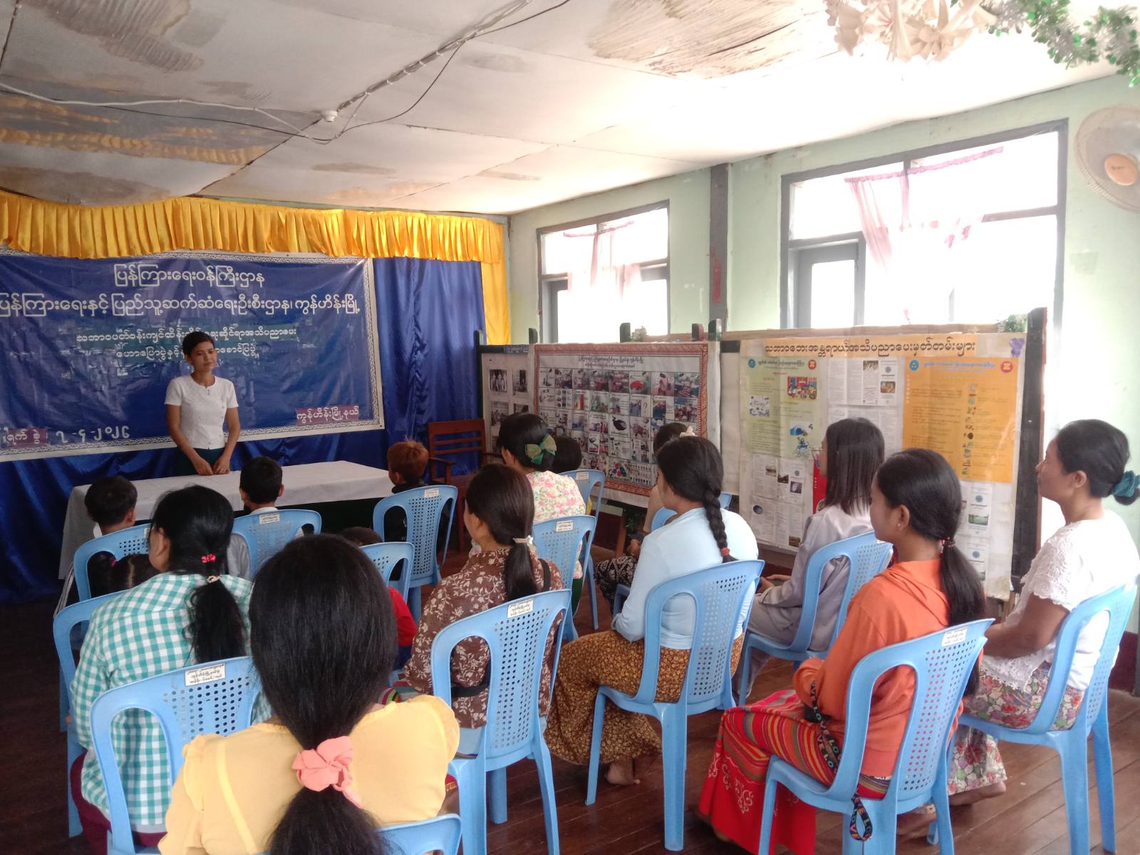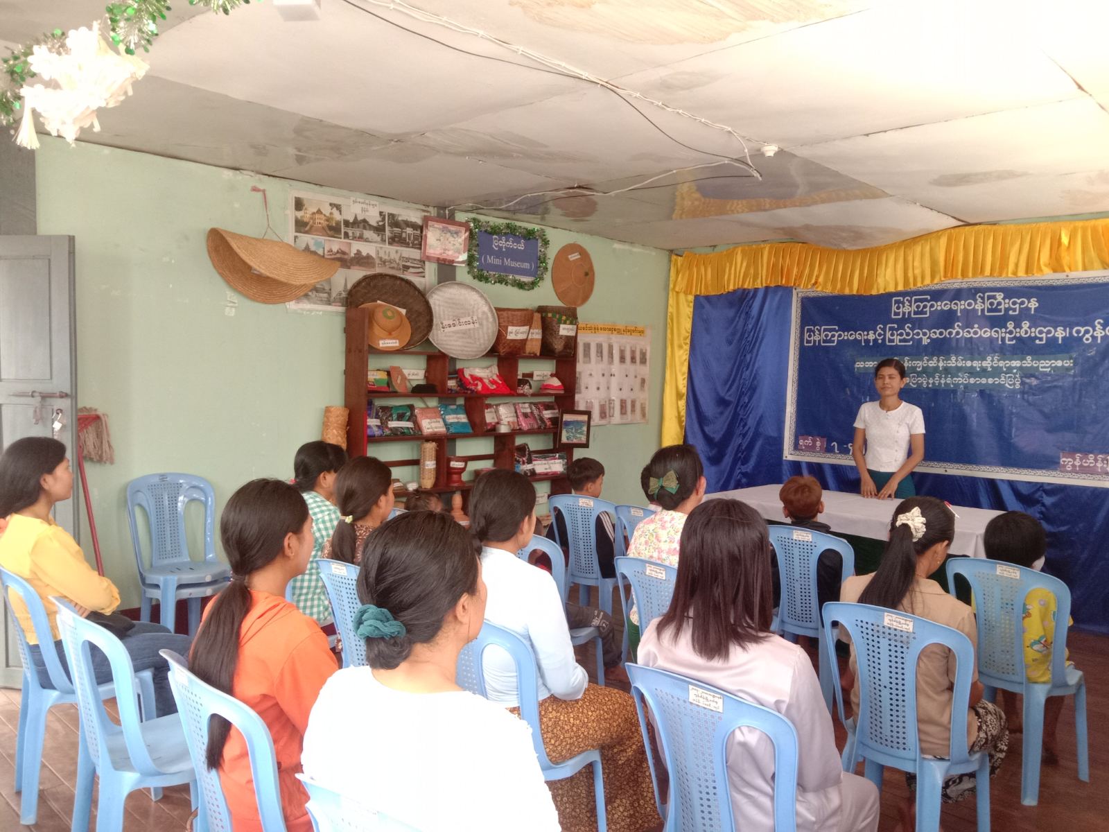 ရှေးဦးစွာ စာကြည့်တိုက်လက်ထောက်-(၃) ဒေါ်သဲမာကသဘာဝပတ်ဝန်းကျင်သည် လူသားတို့၏ အသက်ရှင်နေထိုင်မှုအတွက် အရေးပါဆုံးအရာတစ်ခုဖြစ်ကြောင်း၊ သဘာဝပတ်ဝန်းကျင်မကောင်းပါက လူသားတို့၏ ကျန်းမာရေး၊ စီးပွားရေးနှင့် လူမှုဘဝများပါ ထိခိုက်လာနိုင်၍ သဘာဝပတ်ဝန်းကျင်ကို ထိန်းသိမ်းစောင့်ရှောက်ခြင်းသည် လူသားတိုင်း၏ တာဝန်ဖြစ်ကြောင်း အသိပညာပေးဟောပြောခဲ့ပြီး သဘာဝဘေးအန္တရာယ်ဆိုင်ရာ အသိပညာပေးနံရံကပ်စာစောင်များကို စိတ်ပါဝင်စားစွာ ကြည့်ရှုလေ့လာခဲ့ကြောင်း သိရသည်။