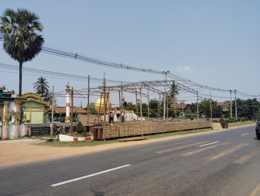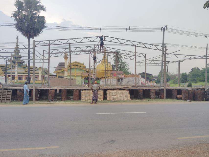 မဟာသင်္ကြန်ပွဲတော် စည်ကားသိုက်မြိုက်စွာ ကျင်းပနိုင်ရေးအတွက် လမ်းလျှောက်သင်္ကြန်နှင့် ဗဟိုရေကစားမဏ္ဍပ်ဆောက်လုပ်ခြင်းကို မြို့နယ်စီမံခန့်ခွဲရေးနှင့် အုပ်ချုပ်ရေးကော်မတီ၏ ကြီးကြပ်မှုဖြင့် ဌာနဆိုင်ရာများ၊ မဏ္ဍပ်ဆောက်လုပ်ရေးအဖွဲ့နှင့် မြို့ပေါ်ရပ်ကွက်များမှ ဝိုင်းဝန်းကူညီသူများဖြင့် ဇီးကုန်းကလေးရပ်ကွက်၊ ရန်ကုန်-ပြည်ကာလမ်းဘေးရှိ သကျမဟာမြတ်မုနိဘုရားကြီးရှေ့တွင် ဆောင်ရွက်လျက်ရှိသည်။