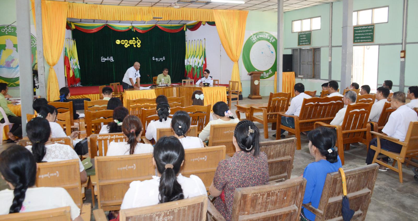 အခမ်းအနားကို မြို့နယ်စီမံခန့်ခွဲရေးနှင့်အုပ်ချုပ်ရေးကော်မတီ(ခေတ္တ)ဥက္ကဋ္ဌ ဦးကျော်မင်းထက်က မြန်မာ့ရိုးရာအတာသင်္ကြန်အား စည်ကားသိုက်မြိုက်စွာဖြင့် လမ်းလျှောက်သင်္ကြန်၊ သနပ်ခါး သင်္ကြန်နှင့် လက်ဖက်သင်္ကြန်ကိုလည်း ထည့်သွင်းကျင်းပသွားမည်ဖြစ်ပါကြောင်း၊ ဆပ်ကော်မတီအဖွဲ့များက ကဏ္ဍအလိုက်ဝိုင်းဝန်းကူညီပေးစေလိုပါကြောင်း အဖွင့်အမှာစကား ပြောကြားပြီး၊ အဖွဲ့ဝင် ဦးကျော်ကျော်က ကျွေးမွေးဧည့်ခံရေး၊ မဏ္ဍပ်ပြင်ဆင်ရေး၊ ဖျော်ဖြေရေး၊ ဘဏ္ဍာငွေရှာဖွေရေးဆိုင်ရာကိစ္စရပ်များကို ရှင်းလင်းတင်ပြခဲ့သည်။ ထို့နောက် ဆပ်ကော်မတီများနှင့်ယိမ်းအဖွဲ့များက အသီးသီးဆွေးနွေးကြသည်။ ထို့နောက် မြို့နယ်စီမံခန့်ခွဲရေးနှင့် အုပ်ချုပ်ရေး ကော်မတီ(ခေတ္တ)ဥက္ကဋ္ဌက တင်ပြဆွေးနွေးမှုများအား ပေါင်းစပ်ဆောင်ရွက်ပေးခဲ့သည်။