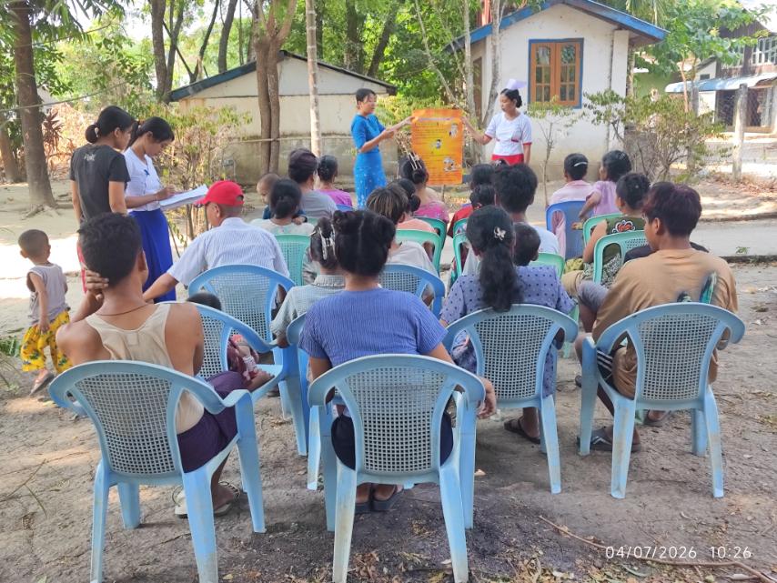 ပဲခူးတိုင်းဒေသကြီး၊ သာယာဝတီခရိုင်၊ မိုးညိုမြို့နယ်၌ နွေရာသီကာလအပူရှိန်ပြင်းထန်မှုကြောင့် ဖြစ်ပေါ်လာနိုင်သည့် ကျန်းမာရေးဆိုင်ရာဆိုးကျိုးများနှင့် အပူဒဏ်အန္တရာယ်များကို ပြည်သူများသိရှိစေရန် အသိပညာပေခြင်းလုပ်ငန်းများကို ယမန်နေ့က ကျေးရွာအုပ်စုများသို့ ကွင်းဆင်းဆောင်ရွက်ခဲ့သည်။