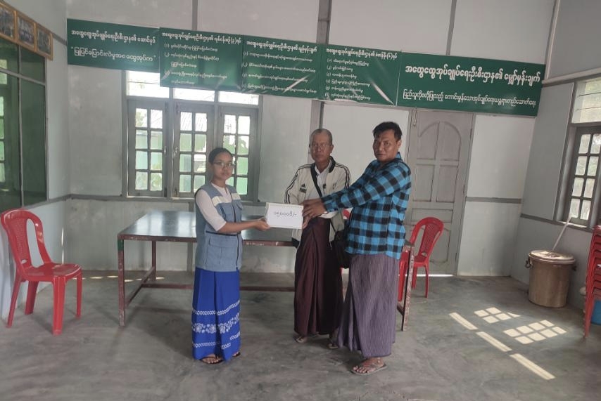 ထိုသို့ ထောက်ပံ့ပေးအပ်ရာတွင် မြို့နယ်ဘေးအန္တရာယ်ဆိုင်ရာစီမံခန့်ခွဲမှုဦးစီးဌာနမှ တာဝန်ခံဦးစီးအရာရှိ ဒေါ်အေးအေးမော်နှင့် ဝန်ထမ်းများက ရပ်ကွပ်/ကျေးရွာအုပ်စု အုပ်ချုပ်ရေးမှူးများနှင့် ပူးပေါင်းကာ လေပြင်းတိုက်ခတ်မှုကြောင့် ပျက်စီးဆုံးရှုံးခဲ့သည့် မကြီးထုံးကျေးရွာအုပ်စု၊ မကြီးထုံးကျေးရွာတွင် နေအိမ် (၂) လုံး၊ ဥသျှစ်ပင်မြို့၊ ရတနာပုံရပ်ကွက်တွင် နေအိမ် (၂) လုံး၊ သူလဲတန်းကျေးရွာအုပ်စု၊ ချင်းကုန်းကျေးရွာတွင်နေအိမ် (၂) လုံး စုစုပေါင်း နေအိမ် (၆) လုံး၊ လူဦးရေ (၂၄) ဦးတို့အတွက် အိမ်ဆောက်ပစ္စည်းဖိုးငွေနှင့် ဆန်ရိက္ခာဖိုးငွေများအား ထောက်ပံ့ပေးအပ်ခဲ့ကြောင်း သိရှိရသည်။