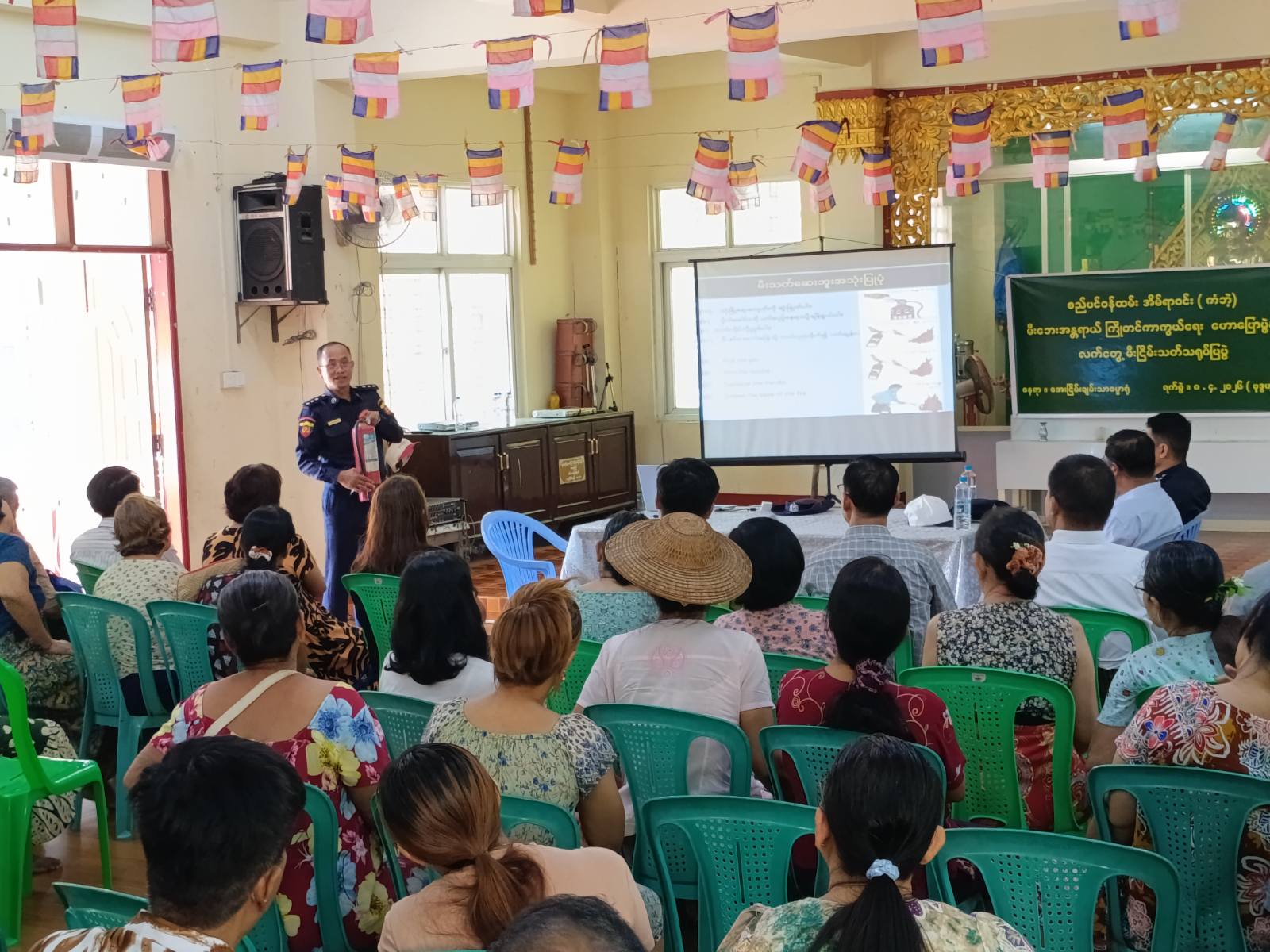 ရန်ကုန်တိုင်းဒေသကြီး၊ ရန်ကင်းမြို့နယ် အမှတ်(၈)ရပ်ကွက် နှင်းဆီလမ်းရှိ ရန်ကုန်မြို့တော်စည်ပင်သာယာရေးကော်မတီ ကံဘဲ့ဝန်ထမ်းအိမ်ရာနေ ဝန်ထမ်းများနှင့်မိသားစုဝင်များအား မြို့နယ်မီးသတ်ဦးစီးမှူးဦးထိန်လင်းနှင့် စည်ပင်မီးသတ်ဌာနစုမှူးတို့ဦးဆောင်၍ မီးဘေးအန္တရာယ်ကြိုတင်ကာကွယ်ရေး အသိပညာပေးဆွေးနွေးခြင်းနှင့် မီးငြိမ်းသတ်ရေးလက်တွေ့သရုပ်ပြလေ့ကျင့်ခြင်းကို ယနေ့ နံနက်၁၀ နာရီက ဆောင်ရွက်သည်။