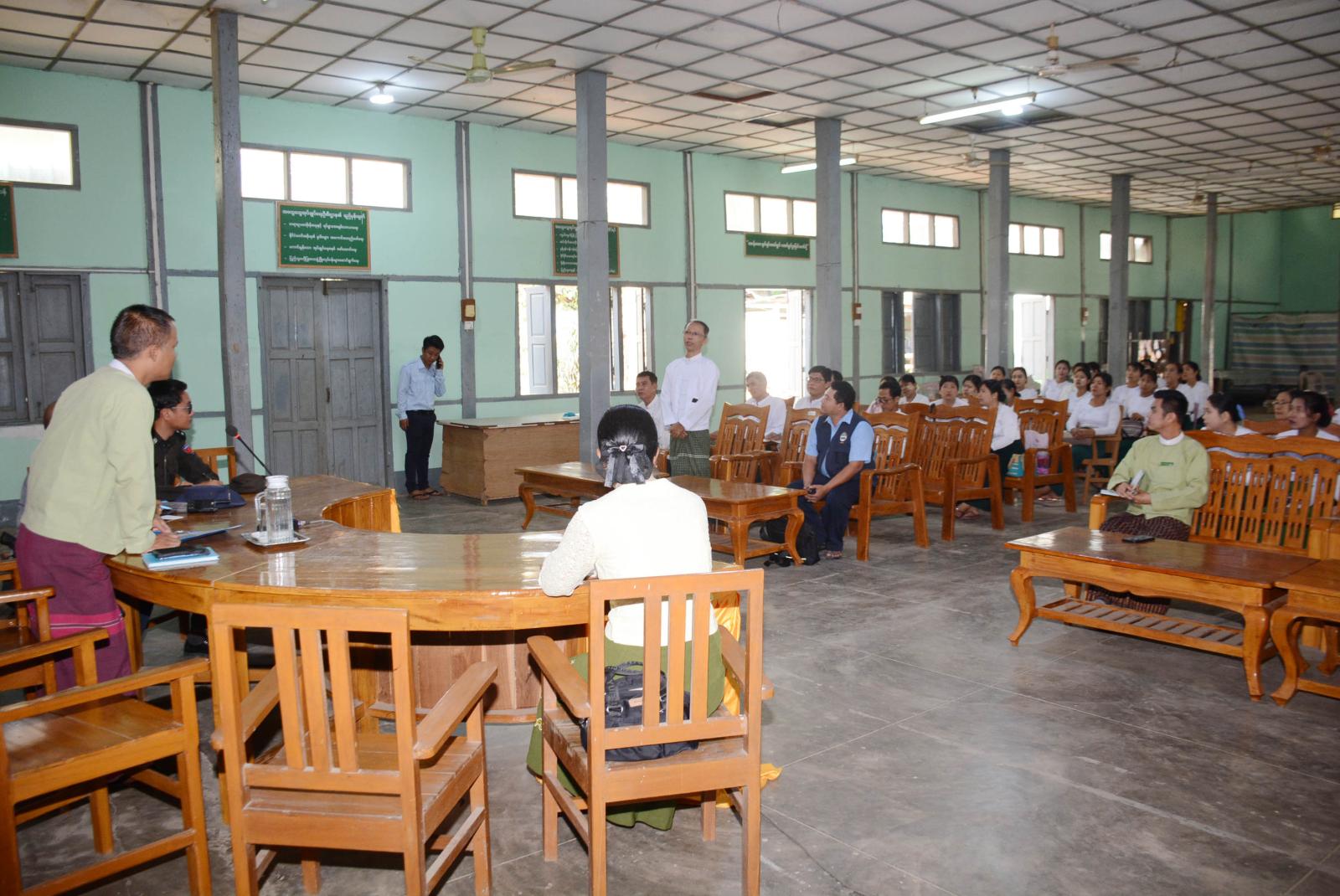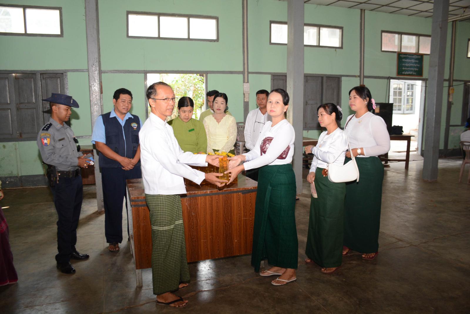 ဦးစွာ မြို့နယ်ကုန်စျေးနှုန်းတည်ငြိမ်ကျဆင်းရေးကော်မတီ၊ မြို့နယ်စီမံခန့်ခွဲရေးနှင့်အုပ်ချုပ်ရေးကော်မတီ(ခေတ္တ)ဥက္ကဋ္ဌ ဦးကျော်မင်းထက်က ရပ်ဝေးမှ ရောက်ရှိ နေထိုင်တာဝန်ထမ်းဆောင်လျက်ရှိသော ပညာရေးဌာနမှ ဆရာ၊ဆရာများအား ဧရာဝတီတိုင်းဒေသကြီးအစိုးရအဖွဲ့၏ လမ်းညွှန်မှုများဖြင့် ဆရာ၊ ဆရာမ တစ်ဖက်တစ်လမ်းမှ အဆင်ပြေစေရန်အတွက် တစ်ဦးလျှင် စာအုန်းဆီ ၅၀ ကျပ်သားကို သတ်မှတ် ရည်ညွှန်းစျေးနှုန်းများဖြင့် ရောင်းချသွားမည်ဖြစ်ကြောင်း၊ ဆရာ၊ ဆရာမများအနေဖြင့် လိုအပ်သော အခက်အခဲများရှိပါက အချိန်မရွေး တင်ပြနိုင်ပါကြောင်း၊ မိမိတို့အုပ်ချုပ်ရေးအပိုင်းမှ လုပ်ထုံးလုပ်နည်းများနှင့်အညီ ကူညီပေးသွားမည်ဖြစ်ကြောင်း ပြောကြားသည်။