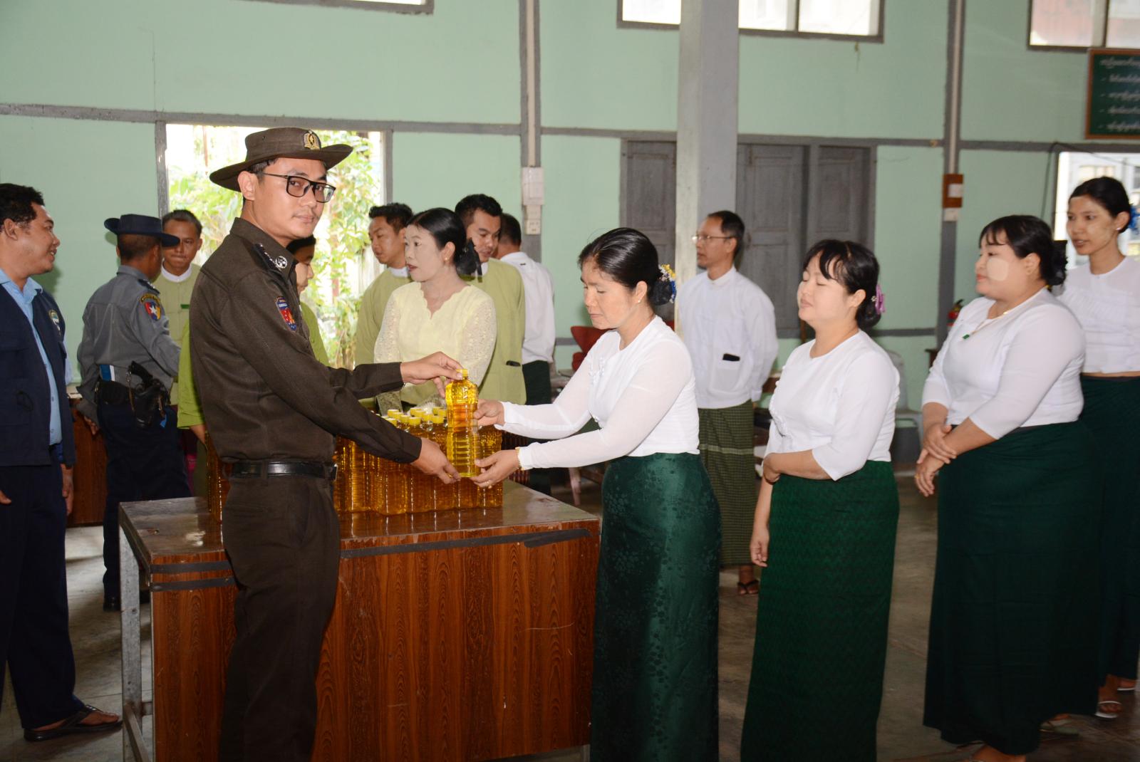 ထို့နောက် ရပ်ဝေးတာဝန်ကျ ဆရာ၊ ဆရာမများအား တစ်ဦးလျှင် ဆီ ၅၀ ကျပ်သားစီအား မြို့နယ်ကုန်စျေးနှုန်းတည်ငြိမ်ကျဆင်းရေးကော်မတီ၊ မြို့နယ်စီမံခန့်ခွဲရေးနှင့်အုပ်ချုပ်ရေးကော်မတီ (ခေတ္တ) ဥက္ကဋ္ဌနှင့် အဖွဲ့ဝင်များ၊ မြို့နယ်စားအုန်းဆီဖြန့်ဖြူးရောင်းချရေးကြီးကြပ်ကော်မတီများက ဆရာ၊ဆရာမ ၅၅ ဦးအား ရည်ညွှန်းသတ်မှတ်စျေး ၁ ပိဿာ ၇၃၁၅ နှုန်းဖြင့် ရောင်းချပေးခဲ့ကြကြောင်း သိရသည်။