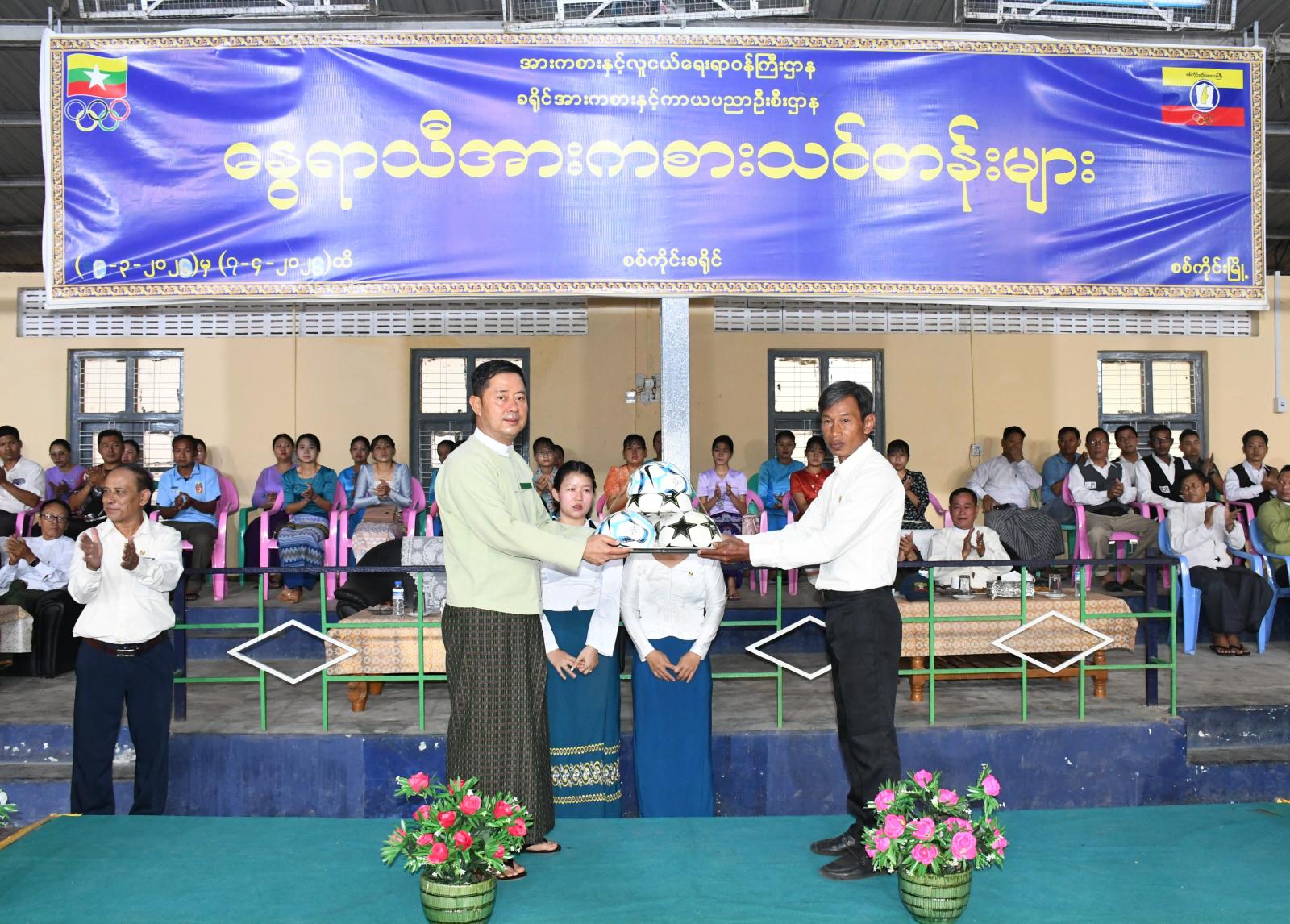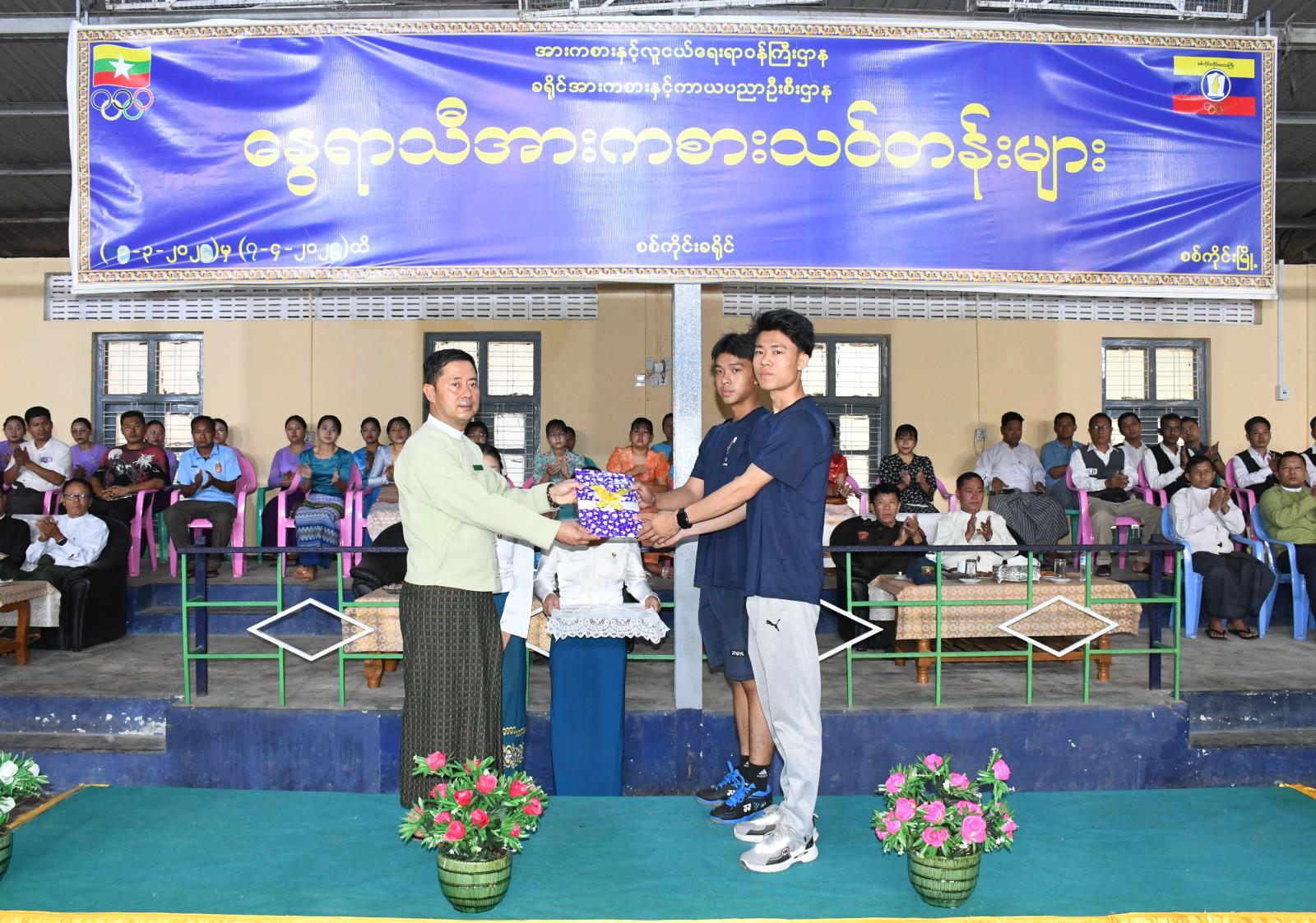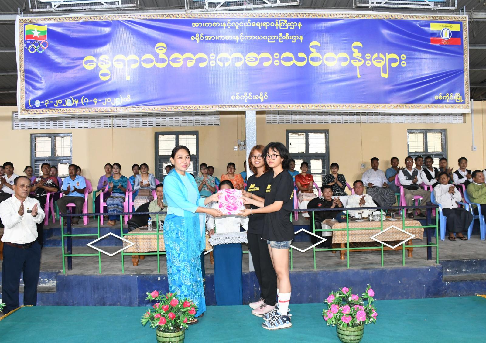 ဆက်လက်၍ သင်တန်းသူများအား ခရိုင်အမျိုးသမီးရေးရာဥက္ကဋ္ဌ ဒေါ်စိုးစိုးအိက သင်တန်းဆင်းလက်မှတ်များ ပေးအပ်ခဲ့ကာ တာဝန်ရှိသူများက အားကစားပစ္စည်းများ ထောက်ပံ့ပေးအပ်ခဲ့ပြီး အားကစားနည်းပြများအား ဂုဏ်ပြုမှတ်တမ်းလွှာများ ပေးအပ်ခြင်းနှင့် အားကစားသရုပ်ပြအဖွဲ့အား ဂုဏ်ပြုဆုများ ချီးမြှင့်ခဲ့ကြောင်းသိရသည်။