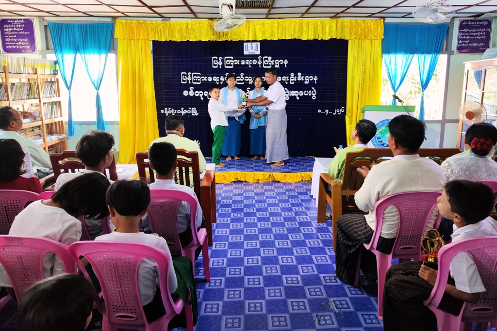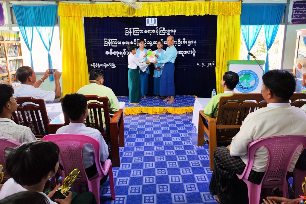 ဆက်လက်၍ ပန်းချီသင်တန်းနှင့် စစ်တုရင်သင်တန်းမှ ဆုရရှိများအား ခရိုင်စီမံခန့်ခွဲရေးနှင့်အုပ်ချုပ်ရေးကော်မတီဥက္ကဋ္ဌ ဦးသက်လွင်နှင့် တာဝန်ရှိသူများက ဂုဏ်ပြုဆုတံဆိပ်များကို အသီးသီးပေးအပ်ချီးမြှင့်ခဲ့ကြ သည်။ သင်တန်းဆင်းပွဲနှင့် ဆုပေးပွဲအခမ်းအနားအပြီးတွင် တက်ရောက်လာကြသည့် ဧည့်သည်တော်များနှင့် သင်တန်းသား၊ သင်တန်းသူများအား ခရိုင်စီမံခန့်ခွဲရေးနှင့်အုပ်ချုပ်ရေးကော်မတီအဖွဲ့ဝင် ဒုတိယဗိုလ်မှူးကြီး ရဲရန်ပိုင်၊ ဇနီးဒေါ်စုမြတ်မွန်နှင့် သားမောင်ဥက္ကာပိုင် မိသားစုတို့မှ အာဟာရဒါနကျွေးမွေးလှူဒါန်းသည့် ကြာဆံဟင်းခါးဖြင့် ဧည့်ခံကျွေးမွေးခဲ့ကြောင်းသိရသည်။