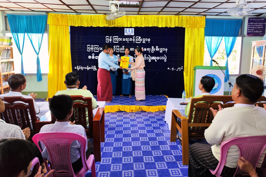 ထို့နောက် ခရိုင်လူမှုဝန်ထမ်းဦးစီးဌာန၊ ဦးစီးအရာရှိ ဒေါ်ခင်လဲ့ရည်လှိုင်က ပန်းချီသင်တန်းအတွက် သက်ထောက်ကူပစ္စည်းများကို ပေးအပ်လှူဒါန်းရာ ခရိုင်ပြန်ကြားရေးနှင့်ပြည်သူ့ဆက်ဆံရေးဦးစီးဌာန၊ ဦးစီးအရာရှိ ဒေါ်ယဉ်ယဉ်အေးက လက်ခံရယူခဲ့ပြီး နွေရာသီပန်းချီသင်တန်းနှင့် စစ်တုရင်သင်တန်းတို့တွင် နည်းစနစ်များကို သင်ကြားပြသပေးခဲ့ကြသည့် သင်တန်းနည်းပြများအား ခရိုင်စီမံခန့်ခွဲရေးနှင့်အုပ်ချုပ်ရေးကော်မတီအဖွဲ့ဝင် ဒုတိယဗိုလ်မှူးကြီးရဲရန်ပိုင်၏ ဇနီးဒေါ်စုမြတ်မွန်က ဂုဏ်ပြုလက်ဆောင်များကို ချီးမြှင့်ခဲ့သည်။