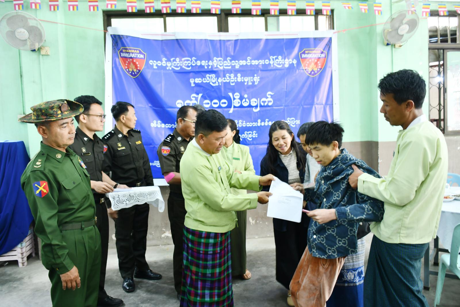 ဆက်လက်၍ ဆောင်ရွက်ပြီးစီးသည့် နိုင်ငံသားစိစစ်ရေးကတ်ပြားများနှင့် အိမ်ထောင်စုလူဦးရေစာရင်းများအား မူဆယ်ခရိုင် စီမံခန့်ခွဲရေးနှင့်အုပ်ချုပ်ရေးကော်မတီဥက္ကဋ္ဌ ဦးစန်းမင်းနှင့် ဇနီးဒေါ်လွင်လွင်အောင်၊ လူဝင်မှုကြီးကြပ်ရေးနှင့်ပြည်သူ့အင်အားဝန်ကြီးဌာန၊ မူဆယ်ခရိုင်ဦးစီးမှူး ဦးထွန်းဇော်ဦးနှင့် မြို့နယ်ဦးစီးမှူး ဦးဆလိုင်းဟေမန်ထွန်း၊ မူဆယ်မြို့နယ် စီမံခန့်ခွဲရေးကော်မတီဥက္ကဋ္ဌ ဦးဇော်လင်းနှင့် တာဝန်ရှိသူများမှ ပြည်သူများလက်ဝယ်သို့ ပေးအပ်ခဲ့ကြောင်း သိရှိရသည်။