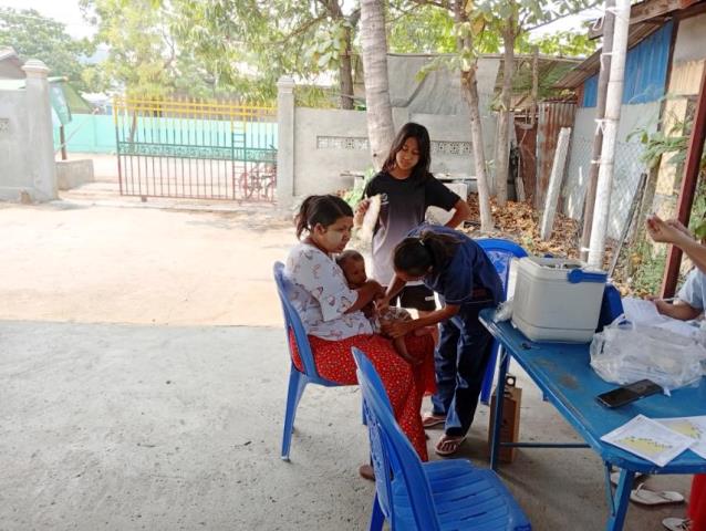 အဆိုပါကာကွယ်ဆေးထိုးနှံခြင်း၊တိုက်ကျွေးခြင်းများကို မြို့နယ်အတွင်းရှိ အသက်(၂)နှစ်အောက်ကလေးများနှင့် ကိုယ်ဝန်ဆောင်မိခင်များအား ကျန်းမာရေးဝန်ထမ်း ဆရာမများကအဖွဲ့ခွဲ၍ မြေပြင်ကွင်းဆင်းကာ ရပ်ကွက်၊ ကျေးရွာများရှိစုရပ်အသီးသီးတွင် ကာကွယ်ဆေးထိုးနှံခြင်း၊ တိုက်ကျွေးခြင်းများကို ဆောင်ရွက်ပေးလျက်ရှိကြောင်း သိရသည်။