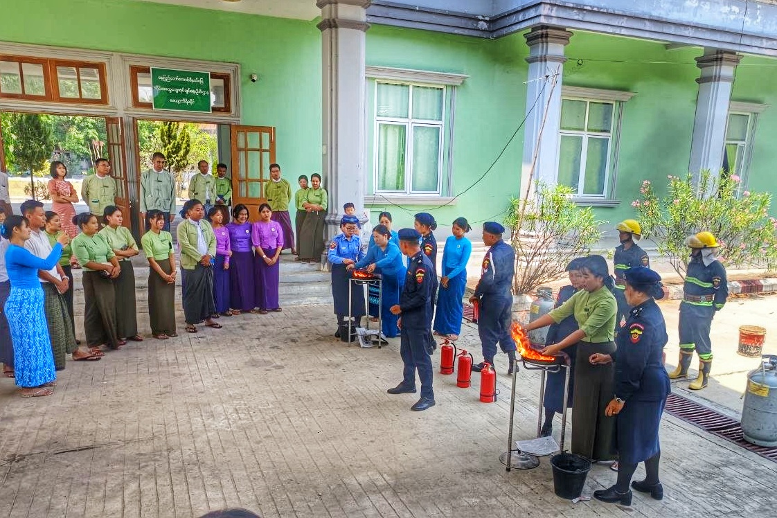 ထို့နောက် တက်ရောက်လာသည့် ဌာနဆိုင်ရာဝန်ထမ်းများက မီးဘေးအန္တရာယ်အပါအဝင် သဘာဝဘေးအန္တရာယ်ဆိုင်ရာကိစ္စရပ်များနှင့် ပတ်သက်၍ သိရှိလိုသည်များကို မေးမြန်းဆွေးနွေးရာ တာဝန်ရှိသူများက ပြန်လည်ရှင်းလင်းဖြေကြားခဲ့ပြီး ဟောပြောပွဲအပြီးတွင် ခရိုင်မီးသတ်ဦးစီးမှူး ဦးစိုးသက်နောင်နှင့် တပ်ဖွဲ့ဝင်များက ဌာနဆိုင်ရာဝန်ထမ်းများအား မီးဘေးအန္တရာယ်ကာကွယ်ရေး ဇာတ်တိုက်လေးကျင့်ခြင်းနှင့် မီးသတ်ဆေးဘူးနှင့် လက်တွေးမီးငြိမ်းသတ်ခြင်းများ ဆောင်ရွက် ပေးခဲ့ကြောင်း သိရသည်။