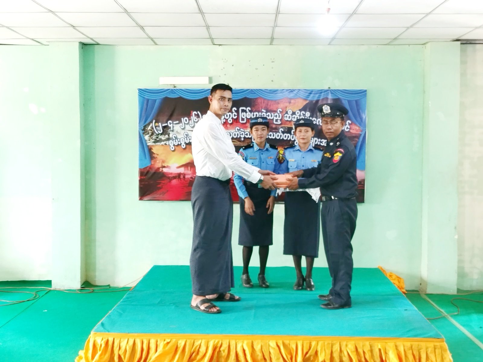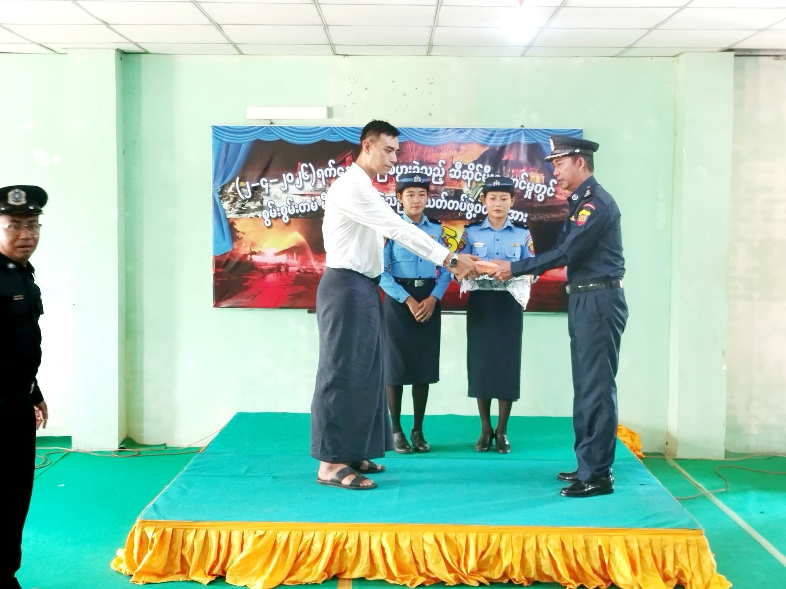 ဘားအံမြို့ ကော့သင်းရှူးကျေးရွာအုပ်စု လှိုင်ကားကျေးရွာရှိ ရှမ်းလေးဆီဆိုင် အမှတ်(၃) မီးလောင်မှုတွင် စွမ်းစွမ်းတမံ မီးငြိမ်းသတ်ခဲ့သော မီးသတ်တပ်ဖွဲ့ဝင်များအား ဂုဏ်ပြုပွဲအခမ်းအနားကို ဧပြီ ၈ ရက် နံနက်ပိုင်းက ဘားအံမြို့၊ လှာကမြင်ကွက်သစ်ရှိ ဘားအံခရိုင်မီးသတ်စခန်း၌ ကျင်းပသည်။