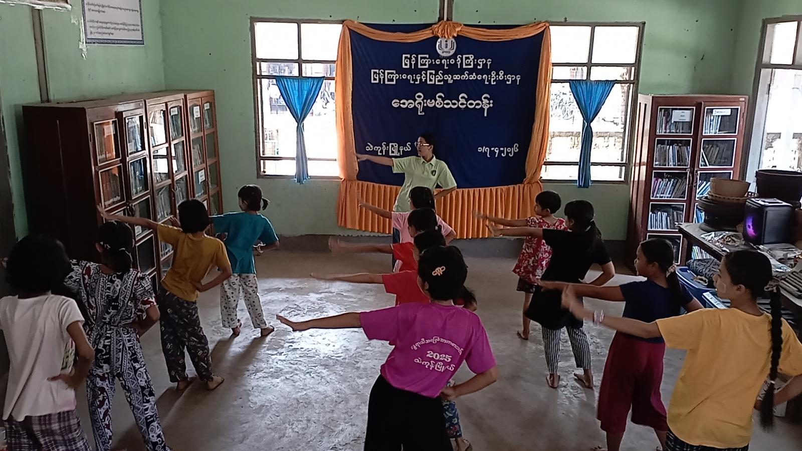 ဆက်လက်၍ အေရိုးဗစ်သင်တန်းအား မြို့နယ်အားကစားနှင့်ကာယပညာဦးစီးဌာန၊ အားကစားနည်းပြ ဒေါ်နွေးနွေးခိုင်ဇင်က သင်တန်းသူများကို အခြေခံအေရိုးဗစ် (Fitness dance) ကကွက်များဖြင့် သင်ကြားပေးပြီး အဆိုပါသင်တန်းကို သင်တန်းသူ (၂၀)ဦးဖြင့် ဧပြီလ(၁)ရက်မှ (၇)ရက်နေ့အထိ နံနက် ၉ နာရီမှ ၁၁ နာရီအချိန်အထိ သင်ကြားပို့ချပေးသွားမည်ဖြစ်ကြောင်း သိရှိရသည်။