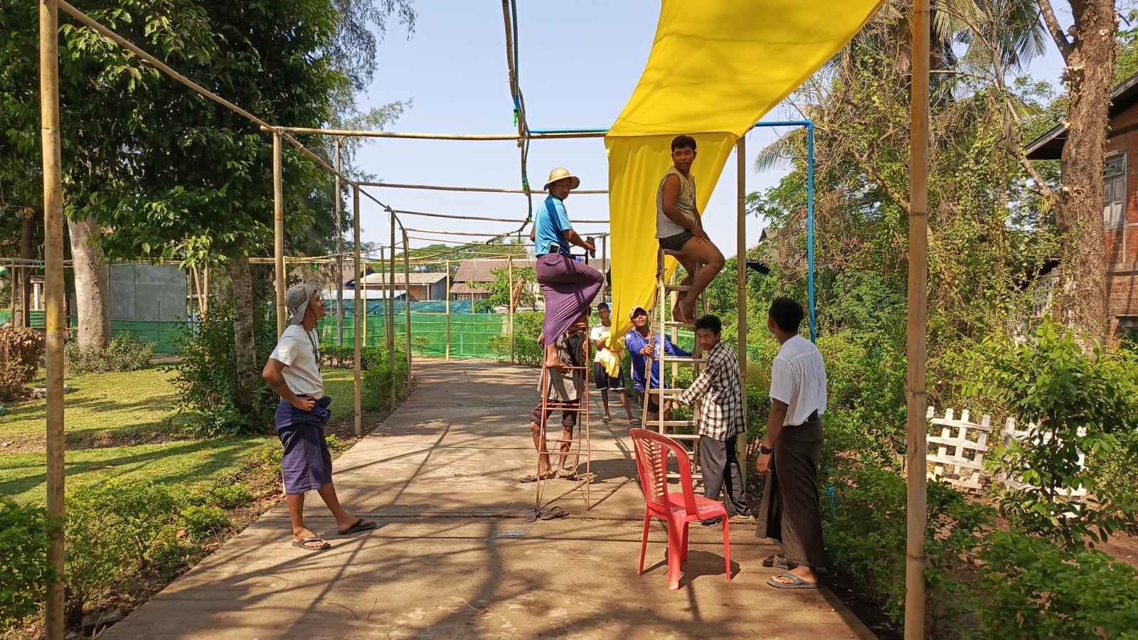 ထိုသို့ဆောင်ရွက်ရာတွင် သင်္ကြန်မဏ္ဍပ်တည်ဆောက်ရေးကော်မတီက ဗဟိုမဏ္ဍပ်တည်ဆောက်ခြင်း၊ မြန်မာ့ရိုးရာလမ်းလျှောက်သင်္ကြန်ပွဲ မုဒ်ဦးတည်ဆောက်ခြင်းနှင့် လမ်းလျှောက်သင်္ကြန်ပွဲ ပြင်ဆင်တည်ဆောက်ခြင်း၊ သင်္ကြန်ရေလုံလောက်စွာရရှိရေးအတွက် ရေပိုက်များဆောင်ရွက်ခြင်း၊ စတုဒိသာကျွေးမွေးမည့်နေရာများ တည်ဆောက်ခြင်း၊ ပြည်သူများ သင်္ကြန်ပွဲတော်ကို ပျော်ရွှင်စွာပါဝင်ဆင်နွဲနိုင်ရေးအတွက် လုံခြုံရေးအစီအစဉ်နေရာများအား ပြင်ဆင်ခြင်းလုပ်ငန်းများကို ဆောင်ရွက်လျက်ရှိသည်။
