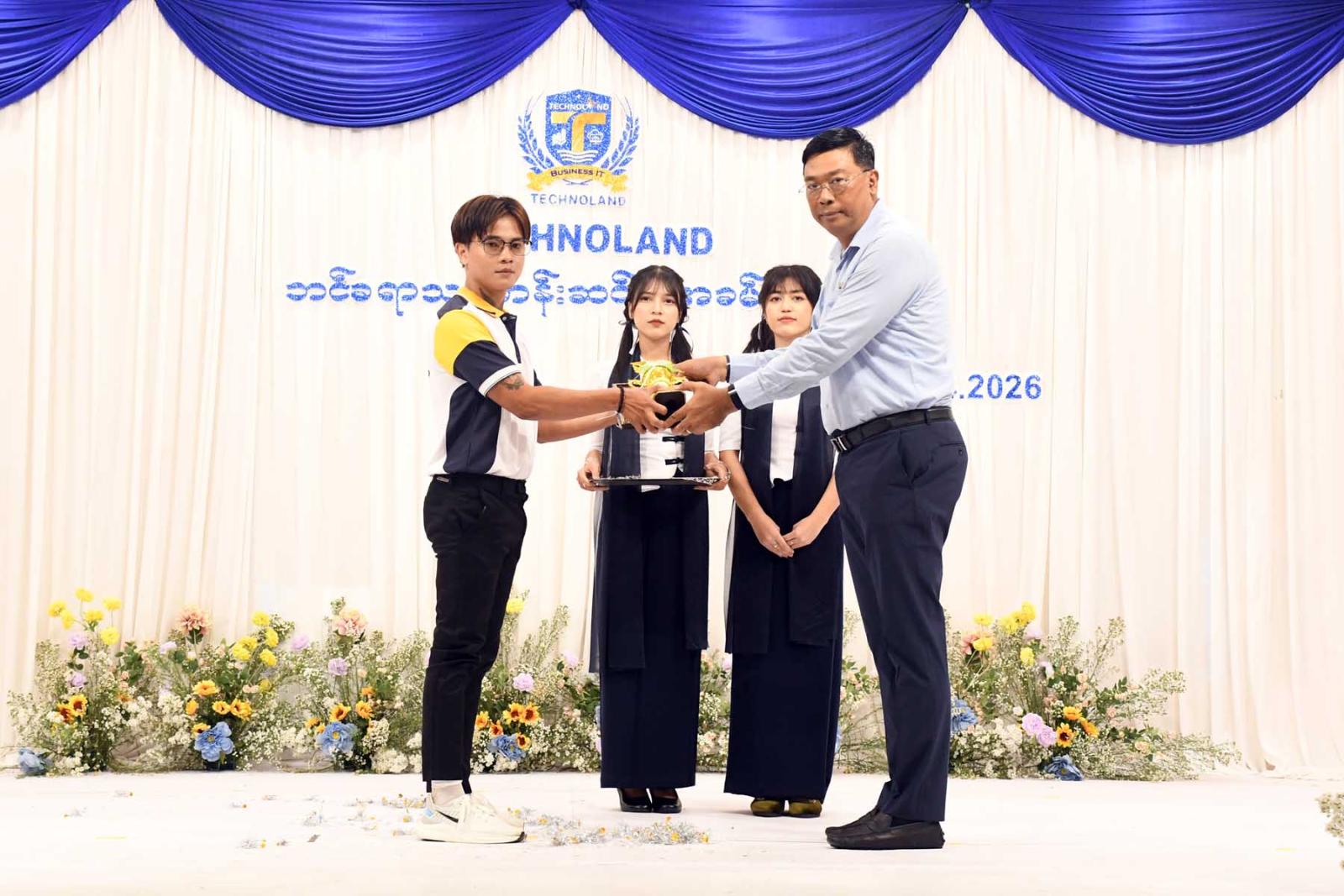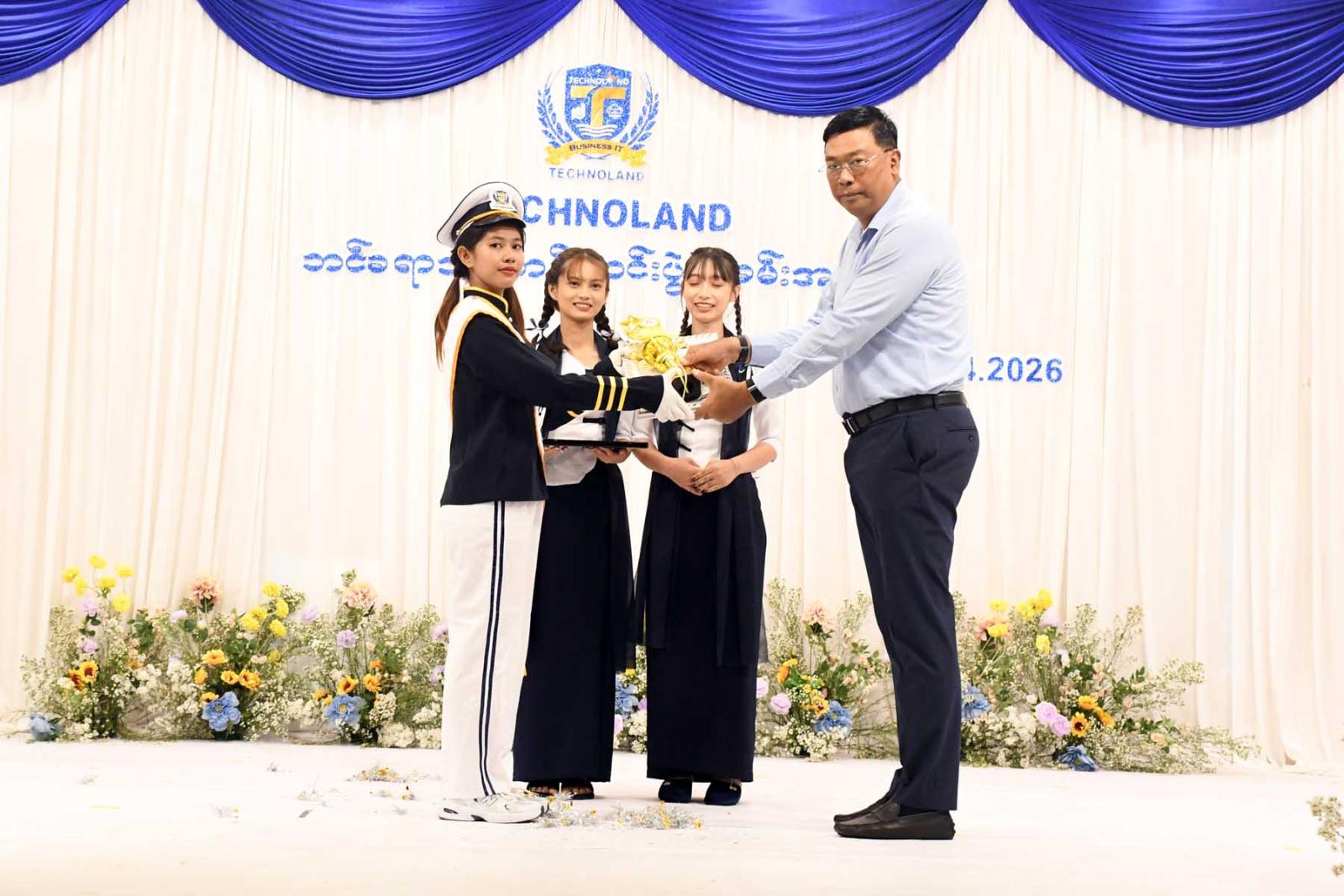 ဆက်လက်၍တိုင်းဒေသကြီး တိုင်းဒေသကြီးဝန်ကြီးချုပ်၊ တိုင်းဒေသကြီးတရားလွှတ်တော်တရားသူကြီးချုပ်၊ တိုင်းဒေသကြီးဝန်ကြီးများက Technoland မှ ကျောင်းသား/ကျောင်းသူများ၏ သင်္ကြန်သီချင်းများဖြင့် ကပြဖျော်ဖြေနေမှုအားလည်းကောင်း၊ သင်တန်းဆင်း ဘင်ခရာအဖွဲ့၏ တီးခတ်မှုစွမ်းရည်အားလည်းကောင်းကြည့်ရှုအားပေးပြီး တိုင်းဒေသကြီးဝန်ကြီးချုပ် က ဘင်ခရာအဖွဲ့အား ဂုဏ်ပြုဆုငွေချီးမြှင့်ခဲ့ကြောင်း သတင်းရရှိသည်။