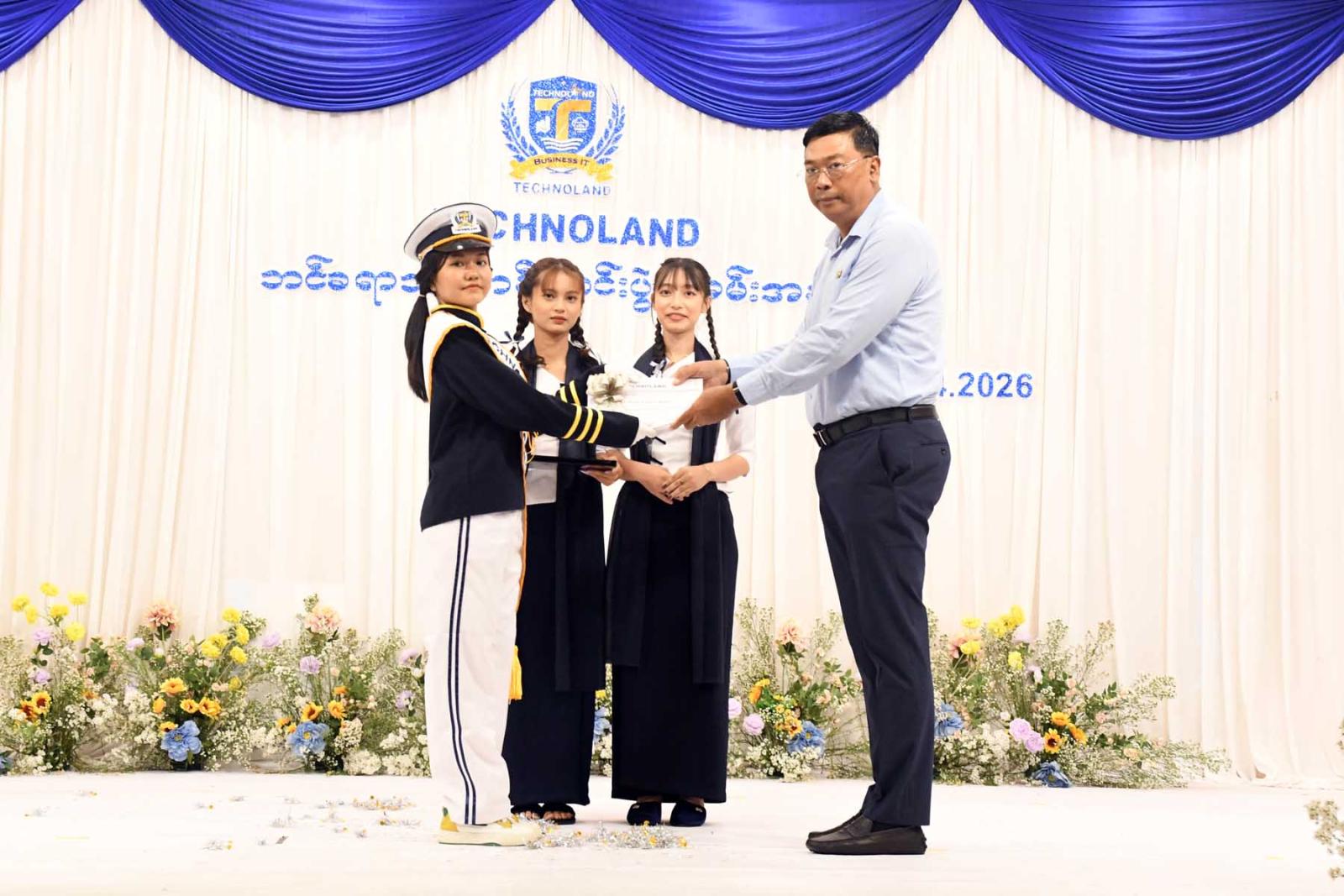 ခေတ်မီနည်းပညာရှင်များဖြစ်ရုံသာမကမိမိနိုင်ငံ၊ မိမိလူမျိုးကိုချစ်မြတ်နိုးသည့် စိတ်ဓာတ်ကောင်းများ ကိန်းအောင်းလာစေရန် ရည်ရွယ်၍ Technoland ပုဂ္ဂလိကသင်တန်းမှ ကြီးမှူးဖွင့်လှစ်ခဲ့သော"Technoland Marching Band (ဘင်ခရာ) သင်တန်း" ဆင်းပွဲအခမ်းအနားကို ယနေ့နံနက် ၉ နာရီ က တနင်္သာရီတိုင်းဒေသကြီး၊ ထားဝယ်မြို့ ဟိုတယ်ထားဝယ်၌ ကျင်းပသည်။