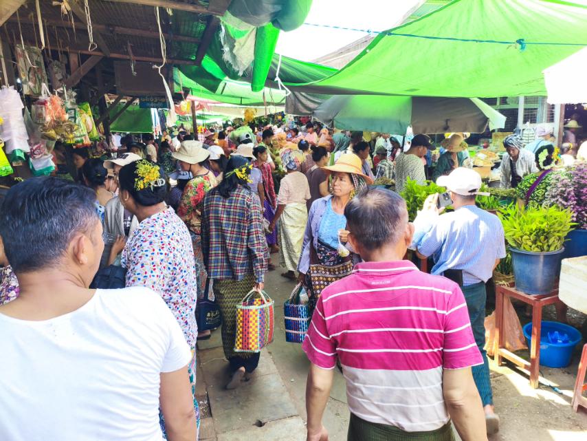 မကွေးတိုင်ဒေသကြီး၊ မကွေးခရိုင် တောင်တွင်းကြီးမြို့နယ် မြို့မစည်ပင်သာယာဈေးကြီးတွင် ယနေ့နံနက်ပိုင်းက သင်္ကြန်ကာလ အလှူအတန်းပြုလုပ် ရန်ဈေးဝယ်သူများ ကြိတ်ကြိတ်တိုး စည်ကားလျက်ရှိကြောင်း သိရသည်။