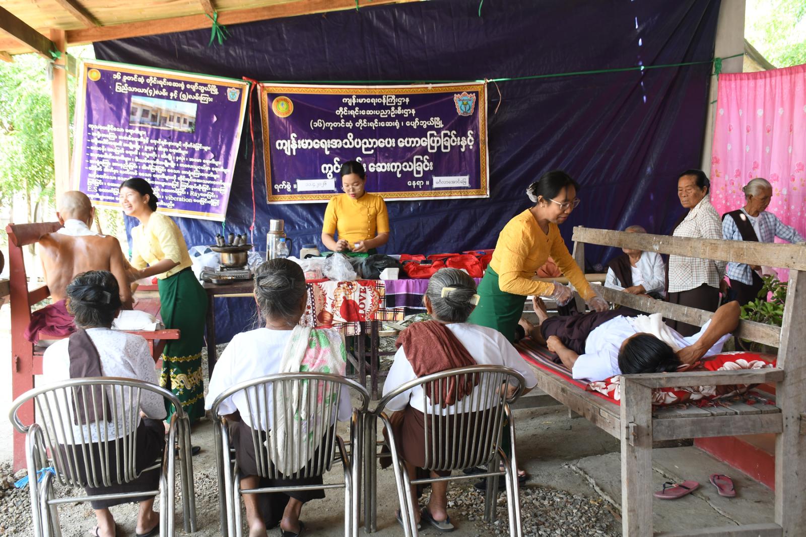 ထိုကဲ့သို့ဆောင်ရွက်ပေးရာတွင် မြို့နယ်(၁၆)ခုတင်ဆံ့တိုင်းရင်းဆေးရုံမှ ဒုတိယတိုင်းရင်းဆေးရုံအုပ် ဒေါ်သက်နှင်းဦးနှင့် ဝန်ထမ်းများက အပူဒဏ်ကာကွယ်ရေးအတွက် နေထိုင်ရမည့်နည်းလမ်းများ၊ သံဃာတော်များနှင့် သက်ကြီးဘိုးဘွားများအား ရာသီအလိုက်ဖြစ်ပွားတတ်သောရောဂါများ၊ အသက်အရွယ်အလိုက် ပြုလုပ်သင့်သည့်လေ့ကျင့်ခန်းများနှင့် ဆောင်ရန်ရှောင်ရန်များကို ရှင်းလင်းဆွေးနွေးကြသည်။