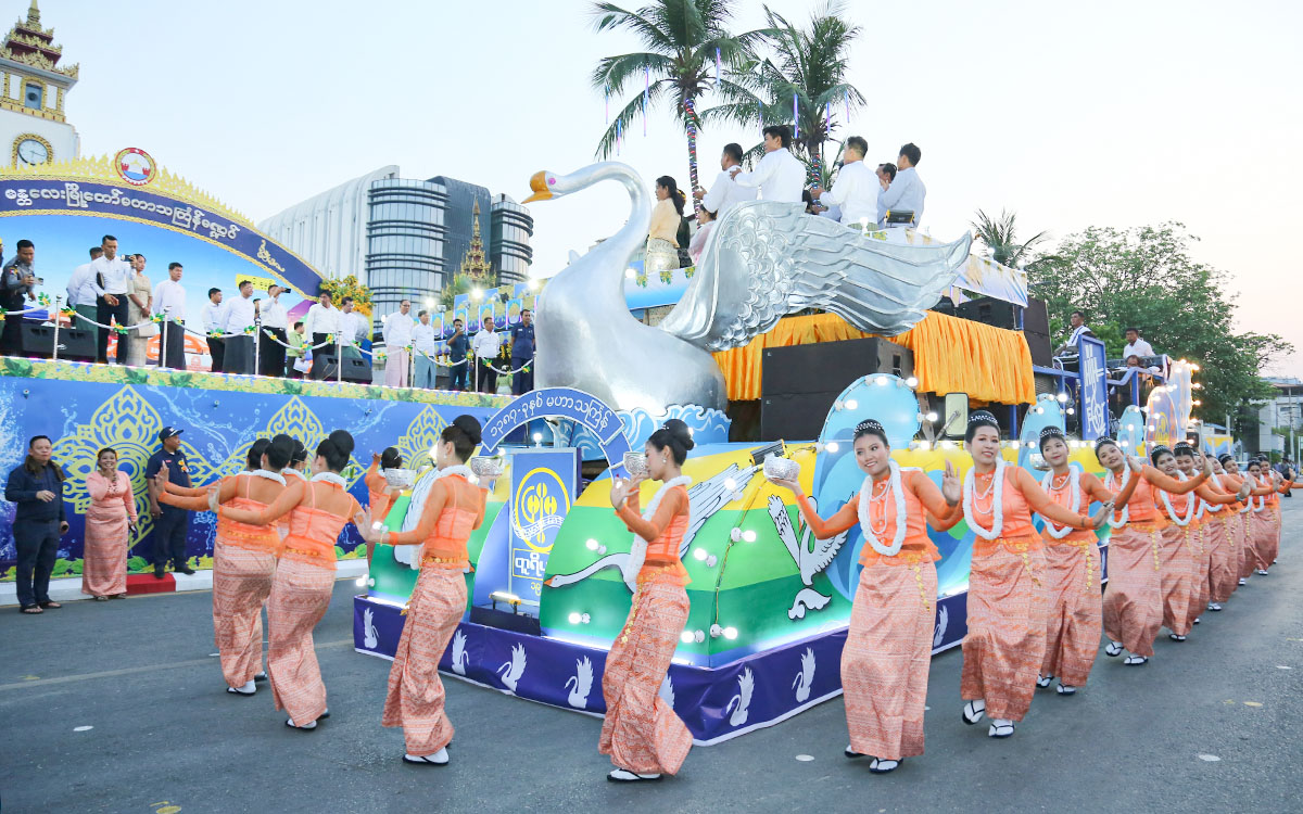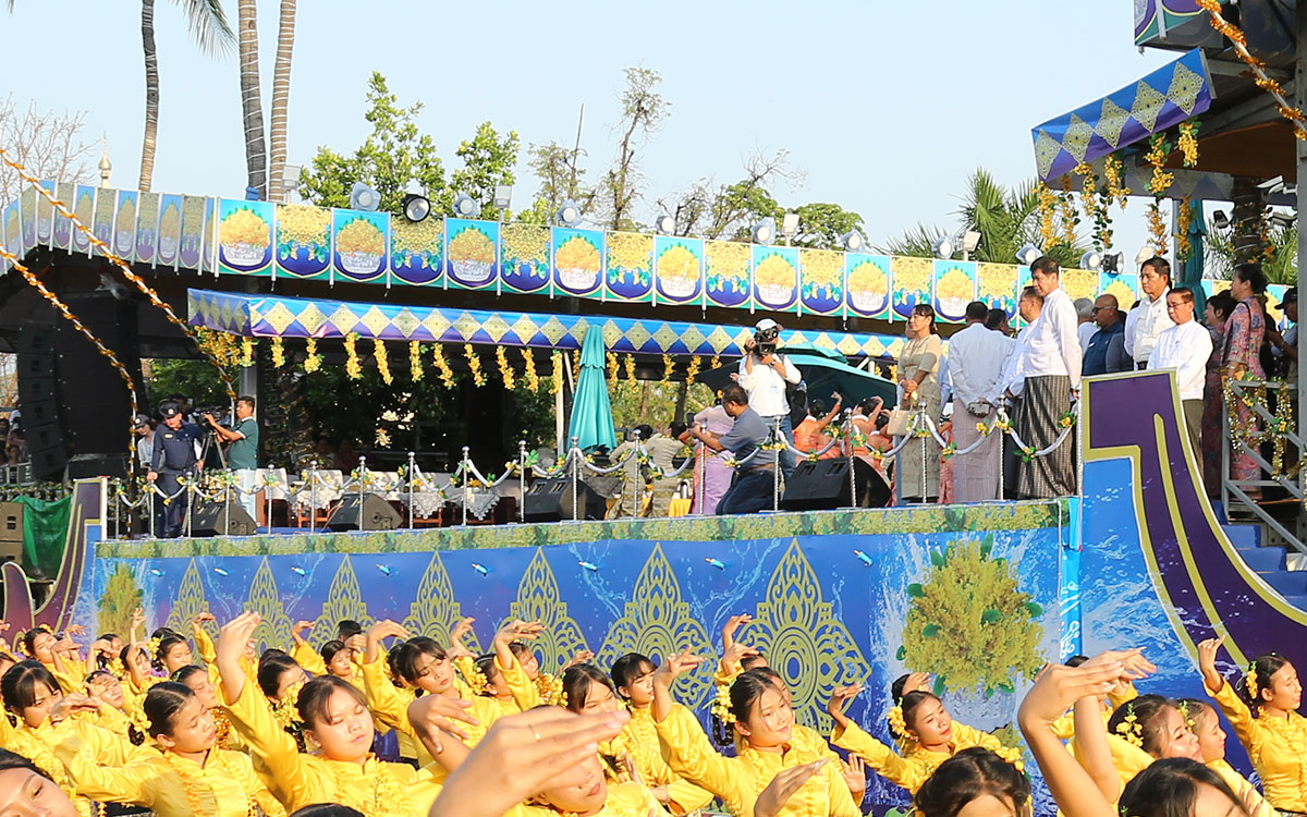 ဖွင့်ပွဲအခမ်းအနားကို ခရုသင်းမှုတ်၍ ဖဲကြိုးဖြတ်ဖွင့်လှစ်ခြင်း၊ အခြေခံပညာကျောင်းအသီးသီးမှ ကျောင်းသူများအပါအဝင် အလယ်ပိုင်းတိုင်းစစ်ဌာနချုပ်၊ အမျိုးသားယဉ်ကျေးမှုနှင့် အနုပညာတက္ကသိုလ် (မန္တလေး)နှင့် မန်းစည်ပင်တို့မှ ယိမ်းအကအဖွဲ့များ စုစုပေါင်း အင်အား ၉၀၀ တို့က အနုပညာဦးစီးဌာန မန္တလေးဌာနခွဲမှ မင်္ဂလာစည်တော်၊ ဆိုင်းအဖွဲ့တို့နှင့်တွဲဖက်၍ သင်္ကြန်အဖွင့်သီချင်း၊ သင်္ကြန်ယိမ်းအကတို့ဖြင့် ကပြဖျော်ဖြေခြင်းများကို ဝတ်စုံပြည့်ဖြင့်ဆောင်ရွက်ခဲ့ကြပြီး ဝင်းခင်းအဖွဲ့၏ သရုပ်ဖော်တင်ပြသခြင်း၊ ပျူခေတ်၊ ပုဂံခေတ်၊ အင်းဝခေတ်၊ ကုန်းဘောင်ခေတ်၊ ရတနာပုံခေတ်၊ မျက်မှောက်ခေတ်တို့ကို ကိုယ်စား ပြုသော ခေတ်(၆)ခေတ် သမီးပျိုများက အလှပြလှည်းယဉ်များဖြင့် ဂါရဝပြုသရုပ်ဖော်ပြသခြင်း၊ အကအဖွဲ့တစ်ဖွဲ့လျှင် ၅၀ပါ အတာအိုးနှင့်လှပျိုဖြူများအကအဖွဲ့၊ ငွေဖလားနှင့်ပန်းပိတောက်ပျိုအကအဖွဲ့၊ မြူးကြွဟန်ပန်နွေမတို့သင်္ကြန် အကအဖွဲ့၊ ပုဝါအလှနှင့် သင်္ကြန်မယ်အကအဖွဲ့၊ အိမ်တော်ရာထီးအလှ မန်းကေသီအကအဖွဲ့၊ သနပ်ခါးဖြူဖြူ မန္တလာသူအကအဖွဲ့၊ လက်ဖက်အုပ်ကိုယ်စီ မန်းပျိုမဒီအကအဖွဲ့၊ စက်ဘီးလေးနဲ့ မန္တလာသူအဖွဲ့ စုစုပေါင်းအကအဖွဲ့(၈)ဖွဲ့မှ ဖြတ်သန်းဂါရဝပြု ဖျော်ဖြေတင်ဆက်ခြင်း၊ မြို့မငွေငန်းအလှပြယာဉ်က မန္တလေးမြို့တော်မဟာသင်္ကြန်မဏ္ဍပ်ရှေ့မှဖြတ်သန်းဂါရဝပြု ဖျော်ဖြေခြင်းနှင့် ကျောင်းသူကလေးများက မြို့မငွေငန်းအလှပြယာဉ်ကို ဝိုင်းပတ်၍ ပြန်လည်ဖျော်ဖြေတင်ဆက်ခြင်းများကို တိုင်းဒေသကြီးဝန်ကြီးချုပ်နှင့်အဖွဲ့က ကြည့်ရှုအားပေးပြီး လိုအပ်သည်များကို တာဝန်ရှိသူများအား ဖြည့်ဆည်းဆောင်ရွက်ပေးခဲ့ကြောင်း သတင်းရရှိသည်။